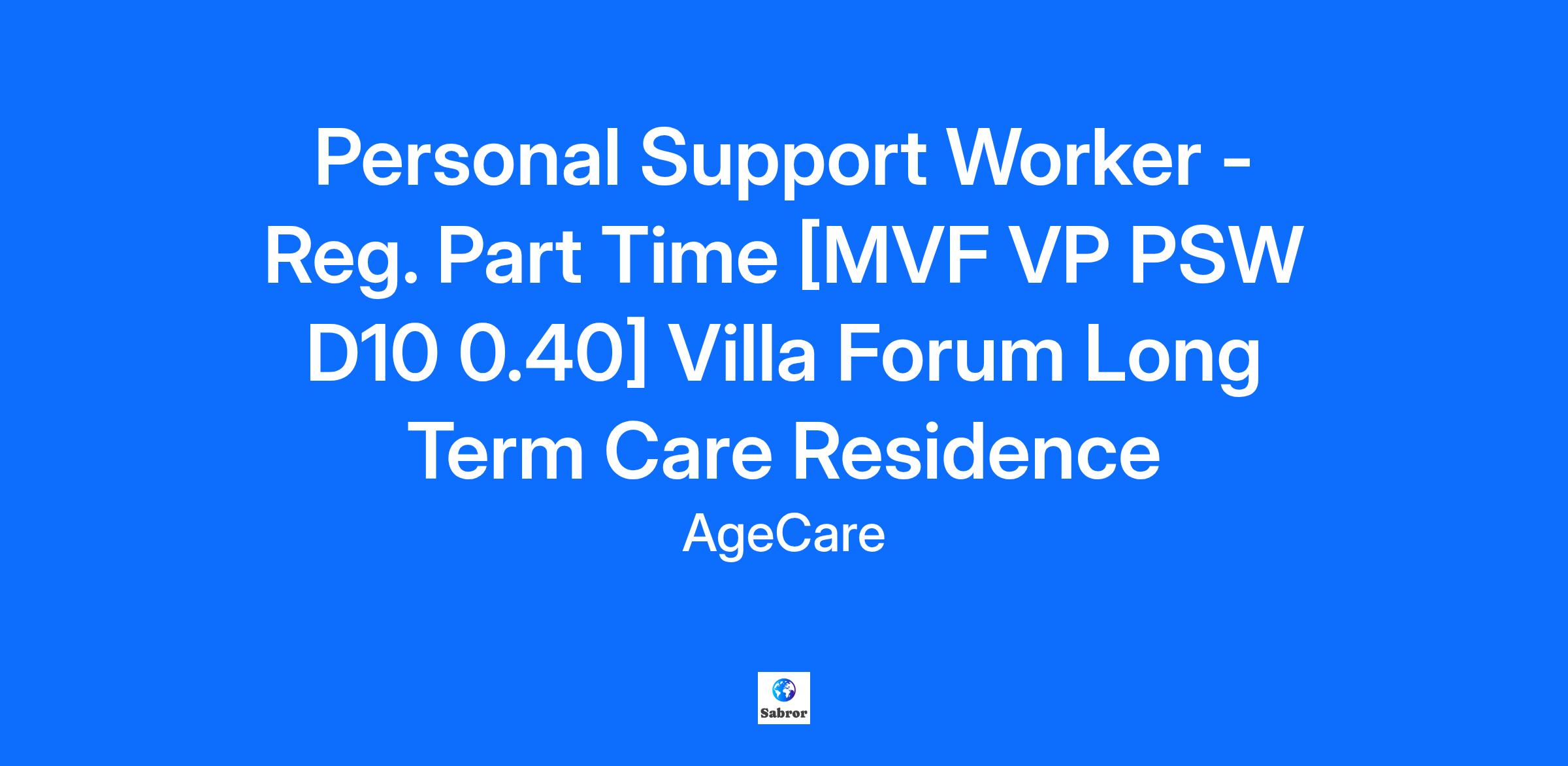 Personal Support Worker - Reg. Part Time [MVF VP PSW D10 0.40] Villa Forum Long Term Care Residence