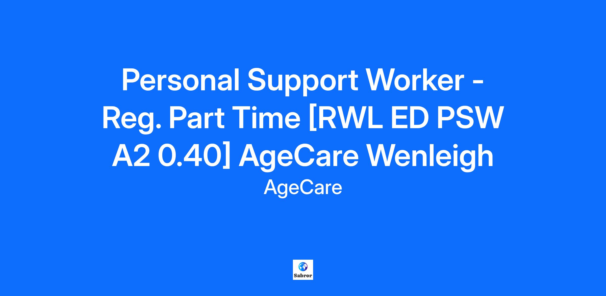 Personal Support Worker - Reg. Part Time [RWL ED PSW A2 0.40] AgeCare Wenleigh