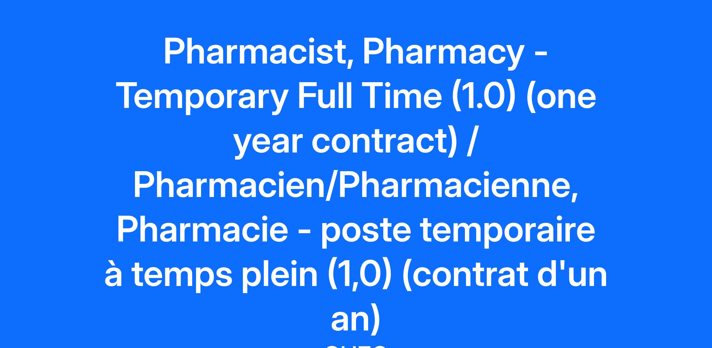 Compensation Pay Range: $52.15-$64.50 Job Description: Please Note: If you are a current CHEO employee with access to Workday, please apply to this posting via the Workday application as an internal applicant. To successfully apply for this position, please submit your application by 11:59 pm the day before the advertised closing date in the posting to ensure your application is received. POSITION SUMMARY The Pharmacy Department at CHEO operates on a 24 hour basis, 7 days a week, every day of the year. Pharmacists need to be available to work any shifts including weekends, evenings and overnights. JOB DESCRIPTION: Responsible for the safe, accurate and efficient dispensing of medications Supervises all work performed by the pharmacy assistants and technicians which includes dispensing of medications, sterile and bulk manufacturing, calculations, etc Maintains clinical expertise in at least one area of clinical pharmacy practice. Provides drug information to physicians, nurses and other members of the health care team, as well as to patients Maintains work areas in a clean and orderly fashion Rotates through dispensary, sterile manufacturing and clinical staff pharmacists’ positions Shares evening, week-end and overnight coverage Shares the responsibility of training and/or orienting of new personnel with respect to drug distribution and service aspects of his/her designated area Performs the duties of a preceptor for pharmacy students and interns Contributes and/or assists in the organization of departmental publications and presentations Maintains knowledge of current hospital and pharmacy policies and ensures compliance Assists in the development, implementation and evaluation of pharmacy programs and services Participates in departmental Quality Assurance programs, drug utilization reviews, workload measurements Undertakes special projects as assigned Completes professional activities on a daily basis Initiates and/or completes medication incident reports as required Participates on hospital or departmental committees as assigned Attends and participates in departmental and hospital meetings such as pharmacist meeting, Staff Meeting, Education seminars Maintains professional conduct and standards in all aspects of his/her work and when interacting with hospital staff and the public Cover Kid Care Pharmacy as required Performs other duties as assigned by the Director of Pharmacy QUALIFICATIONS: Vulnerable Sector Check (Essential) Graduate of a Pharmacy degree from a recognized university (Essential) Licensed or eligible for licensure to practice pharmacy by The Ontario College of Pharmacist (Essential) Minimum of two (2) years experience as a Hospital Pharmacist (Preferred) Bilingual (English/ French) (Preferred) Completion of a hospital pharmacy residency program at a recognized Canadian teaching hospital and /or at least five (5) years experience in hospital (Preferred) This assignment may be extended or shortened based on operational needs. * Please note you will be represented by the Ontario Public Service Employees Union (OPSEU). Please note that this position will be based out of Ottawa. Please note that location may be subject to change at any time at the discretion of the employer. All OPSEU members shall be granted an interview upon passing the pre-screening. Pre-screening might include testing. Effective March 29, 2021, CHEO will conduct a more comprehensive pre-screening and evaluation process. This process may include more varied and multidimensional testing such as a written test, practical exam, or other assessment. All candidates who meet the essential and preferred qualifications may be tested. All OPSEU members shall be granted an interview upon passing the pre-screening. Pre-screening might include testing. CHEO is committed to providing a safe environment for staff, patients, and visitors. Consistent with that commitment, all applicants must be fully vaccinated against COVID-19 to be considered for any staff or volunteer opportunities. Applicants are also strongly encouraged to receive their COVID-19 booster shots when eligible to protect against the spread of COVID-19. Upon hiring, presentation of government issued documentation confirming full vaccination must be provided, or presentation of supporting documentation of a valid medical contraindication or other reasonable consideration pursuant to the Ontario Human Rights Code. CHEO values diversity and is an equal opportunity employer. We are committed to providing an inclusive and barrier-free work environment, starting with the hiring process and welcome interest from all qualified applicants. Should you require accommodation during any phase in the recruitment process, please contact Human Resources at talentacquisition@cheo.on.ca. All information received in relation to accommodation will be kept confidential and will be handled in compliance with the Accessibility for Ontarians with Disabilities Act. We thank all those who apply, however, only those to be interviewed will be contacted. Veuillez noter : si vous êtes actuellement un employé du CHEO ayant accès à Workday, veuillez postuler à cette offre via l'application Workday en tant que candidat interne. Veuillez noter : pour postuler avec succès à ce poste, veuillez soumettre votre candidature avant 23 h 59 la veille de la date de clôture annoncée dans l'affichage pour vous assurer que votre candidature est reçue. RÉSUMÉ DES FONCTIONS Le Service de pharmacie du CHEO fonctionne sur une base de 24 heures, 7 jours par semaine, chaque jour de l’année. Les pharmaciens ou pharmaciennes doivent être disponibles pour travailler tous les quarts de travail, y compris les fin de semaines, soirées et nuitées. RÉSUMÉ DES FONCTIONS Assurer l’usage sécuritaire, précis et efficace des médicaments. Superviser tout le travail des assistants, assistantes, techniciens et des techniciennes de la pharmacie, ce qui comprend la distribution de médicament