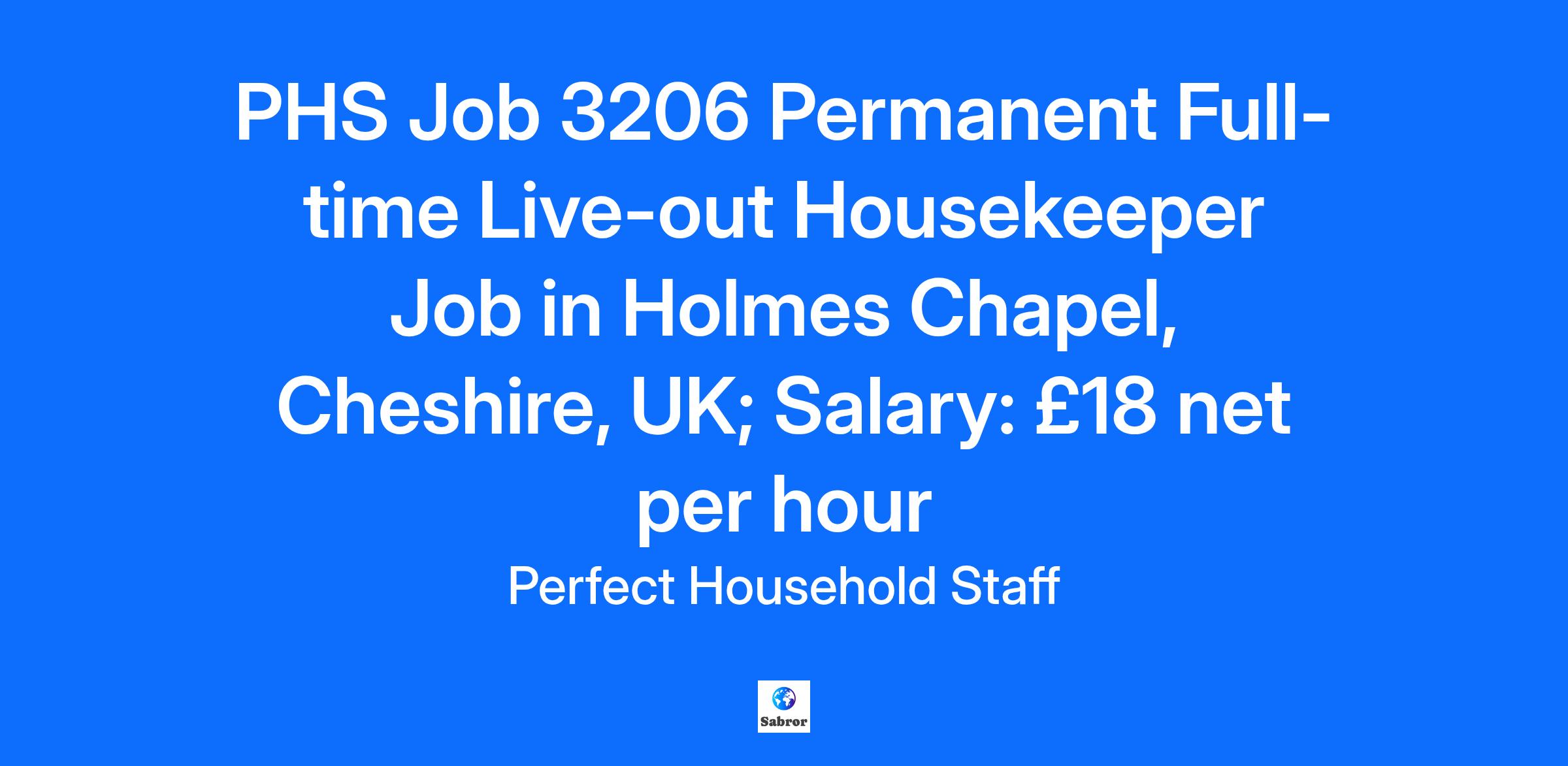 PHS Job 3206 Permanent Full-time Live-out Housekeeper Job in Holmes Chapel, Cheshire, UK; Salary: £18 net per hour