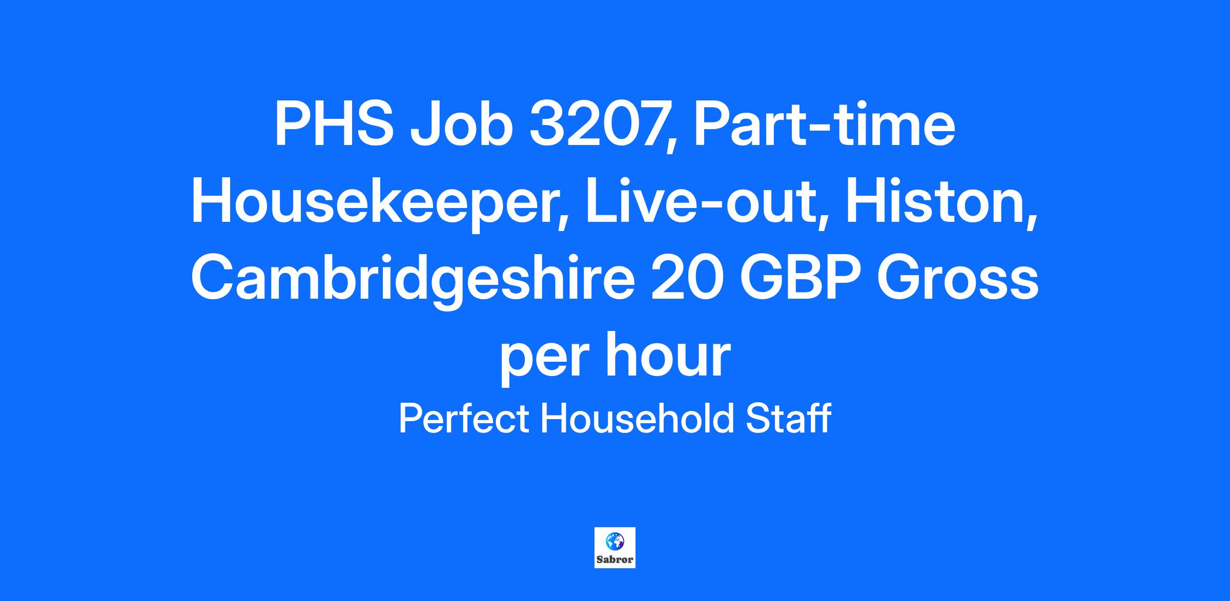 PERMANENT PART TIME LIVE-OUT HOUSEKEEPER JOB LIVE OUT HOUSEKEEPER JOBS | HISTON, CAMBRIDGESHIRE Salary: £20 per hour gross PHS Job 3207 Perfect Household Staff is delighted to offer a part-time Housekeeper position for a lovely family based in Histon, Cambridgeshire. The family of five, consisting of two adults and three polite school-aged children, live in a warm and well-maintained home where they enjoy a calm and organised atmosphere. They are seeking a dependable and detail-oriented Housekeeper to ensure their home is kept clean, fresh, and well presented at all times. The duties are straightforward and focused purely on cleaning, with no cooking, childcare, or pet care required. The role involves maintaining cleanliness throughout the home, carrying out regular dusting, vacuuming, mopping, and managing household laundry and ironing as needed. The family has a few friendly cats, but no care for them is expected. This is a steady part-time position working two days per week for a total of approximately eight hours. The preferred schedule is from 9:00 a.m. to 12:00 or 1:00 p.m., although some flexibility may be offered for the right candidate. The position offers an excellent opportunity for a professional, self-motivated Housekeeper who takes pride in keeping a household running smoothly. The family are kind, respectful employers who value reliability, discretion, and high standards. The start date is as soon as possible. Our household staffing agency has been assisting professional housekeepers find the perfect domestic staff jobs for over a decade. We are one of the leading boutique household staff agencies with international reach, including strong presence across Europe and the Middle East. If you are looking to be employed as a housekeeper, you have come to the right place. We will help you to find a fantastic housekeeper job. Only candidates with the legal right to work in the UK will be considered. Type: Live-Out Housekeeper – Part-Time, Permanent Salary: £20 per hour gross Working Days: Two days a week Working Hours: up to 8 hours a week Language: English Location: Histon, Cambridgeshire Starting date: ASAP Main duties of the Part Time Housekeeper: General cleaning of all rooms. Managing laundry. Dusting, vacuuming, and mopping floors. Wiping kitchen surfaces and cleaning appliances. Keeping cleaning supplies organised and stocked. Requirements for The Part-Time Housekeeper job: Minimum of 3 years’ experience in a private household Strong checkable references UK working permit DBS check Fluency in English If you are personally interested in the private Housekeeper job or are aware of another potential candidate who may be interested in such a vacancy, please apply via the website or email anton@perfecthouseholdstaff.co.uk We are always excited to register new applicants and are happy to answer any questions our candidates have on the vacancies! We are a boutique Housekeeper agency in the UK. If you are looking to be employed as a Housekeeper, you have come to the right place. You will be able to see other jobs in our blog - featured positions