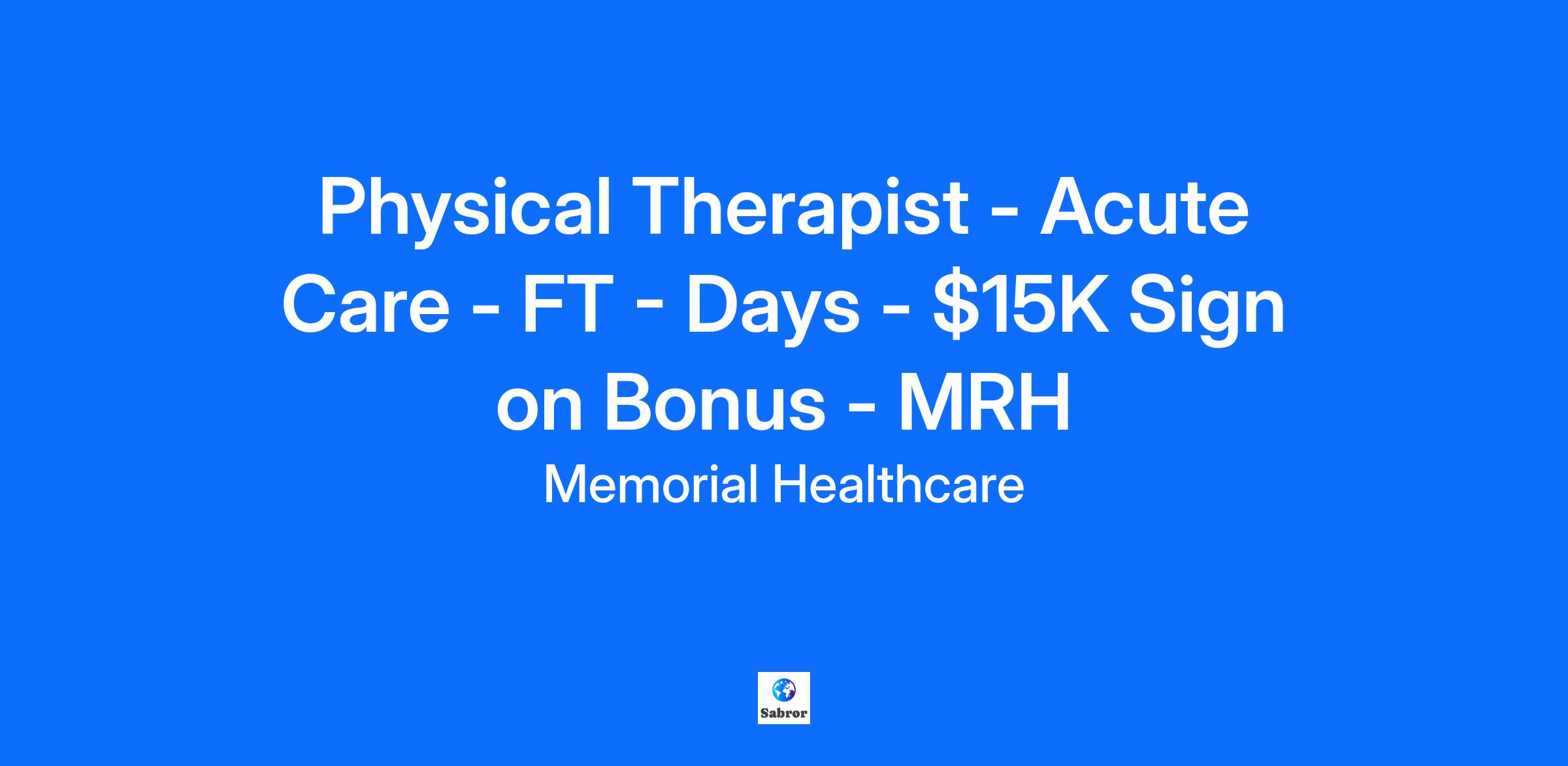 Location: Hollywood, Florida Memorial Rehabilitation Institute provides highly specialized care ranging from complex multiple trauma, stroke and brain injury to physical and speech therapy. Inpatient care is offered at Memorial Regional Hospital South, with outpatient care available in five different locations. We also have a home health team and resources for long-term care at Memorial Manor, while also offering therapy for pediatric developmental diagnosis through Joe DiMaggio Children’s Hospital. Summary: Do you have a passion for acute care? Are you looking for a dynamic, fast-paced environment to foster your clinical & professional growth? The Memorial Regional acute care team values the clinical contributions of our therapists in the care of adults with a variety of medical complexities - 863 bed, Level I Trauma Center - Flexible start times - Enjoy the experience of providing services at the highest level of acute care by treating ECMO, VAD, Transplant and Level I multi-trauma patients. - Expand your knowledge and earn unlimited CEUS with your free subscription to Medbridge & Monthly Rehab Lecture Series - Clinical Ladder - Leadership support - Clinical bedside support of discipline specific supervisors, - Robust mentoring & onboarding program - Regular clinical rotations - Autonomy to bring evidence- based practices to the forefront & help to implement change - Endless opportunities to participate in community events & give back to those we serve - MRH has 4 publications in 4 different journals & received the Gage Award for Quality from America’s Essential Hospitals - PTs have the opportunity to develop wound care skills if interested Responsibilities: Performs and documents initial and ongoing assessments of patient's condition. Plans or assists with patient discharge from therapy services. Supervises activities of physical therapy assistants, students and other support personnel. Designs and implements a plan of care which is appropriate to issues identified, required frequency of treatments, and involves the patient and family. Educates and counsels patients and families regarding treatment plans and progress. Provides information regarding appropriate selection and use of adaptive equipment and support resources. Competencies: ACCOUNTABILITY, CLINICAL POLICIES AND STANDARDS, CUSTOMER SERVICE, DOCUMENTATION, EFFECTIVE COMMUNICATION, PATIENT AND FAMILY CENTERED CARE, PROBLEM SOLVING, RESPONDING TO CHANGE, STANDARDS OF BEHAVIOR Education and Certification Requirements: Accredited Program: Physical Therapy (Required)BLS American Heart E-Card (BLS AHA ECARD) - American Heart Association (AMERICAN HEART), Physical Therapist License (PT LICENSE) - State of Florida (FL) Additional Job Information: Complexity of Work: Requires critical thinking skills, decisive judgment and the ability to work with minimal supervision. Must be able to work in a stressful environment and take appropriate action. Required Work Experience: No prior work experience required. Working Conditions and Physical Requirements: Bending and Stooping = 80% Climbing = 40% Keyboard Entry = 80% Kneeling = 60% Lifting/Carrying Patients 35 Pounds or Greater = 80% Lifting or Carrying 0 - 25 lbs Non-Patient = 80% Lifting or Carrying 2501 lbs - 75 lbs Non-Patient = 80% Lifting or Carrying > 75 lbs Non-Patient = 40% Pushing or Pulling 0 - 25 lbs Non-Patient = 80% Pushing or Pulling 26 - 75 lbs Non-Patient = 80% Pushing or Pulling > 75 lbs Non-Patient = 80% Reaching = 80% Repetitive Movement Foot/Leg = 80% Repetitive Movement Hand/Arm = 80% Running = 40% Sitting = 80% Squatting = 80% Standing = 80% Walking = 80% Audible Speech = 80% Hearing Acuity = 80% Smelling Acuity = 40% Taste Discrimination = 0% Depth Perception = 80% Distinguish Color = 80% Seeing - Far = 80% Seeing - Near = 80% Bio hazardous Waste = 60% Biological Hazards - Respiratory = 60% Biological Hazards - Skin or Ingestion = 60% Blood and/or Bodily Fluids = 80% Communicable Diseases and/or Pathogens = 80% Asbestos = 0% Cytotoxic Chemicals = 60% Dust = 80% Gas/Vapors/Fumes = 60% Hazardous Chemicals = 60% Hazardous Medication = 60% Latex = 80% Computer Monitor = 80% Domestic Animals = 60% Fire Risk = 40% Hazardous Noise = 0% Heating Devices = 60% Hypoxia = 0% Laser/High Intensity Lights = 0% Magnetic Fields = 40% Moving Mechanical Parts = 80% Needles/Sharp Objects = 60% Potential Electric Shock = 0% Potential for Physical Assault = 0% Radiation = 0% Sudden Decompression During Flights = 0% Unprotected Heights = 0% Wet or Slippery Surfaces = 60% Shift: Primarily for office workers - not eligible for shift differential Disclaimer: This job description is not intended, nor should it be construed to be an exhaustive list of all responsibilities, skills, efforts or working conditions associated with the job. It is intended to indicate the general nature and level of work performed by employees within this classification. Wages shown on independent job boards reflect market averages, not specific to any employer. We encourage candidates to talk to their Memorial Healthcare System recruiter to discuss actual pay rates, during the hiring process. Memorial Healthcare System is proud to be an equal opportunity employer committed to workplace diversity. Memorial Healthcare System recruits, hires and promotes qualified candidates for employment opportunities without regard to race, color, age, religion, gender, gender identity or expression, sexual orientation, national origin, veteran status, disability, genetic information, or any factor prohibited by law. We are proud to offer Veteran’s Preference to former military, reservists and military spouses (including widows and widowers). You must indicate your status on your application to take advantage of this program. Employment is subject to post offer, pre-placement assessment, including drug testing. If you need reasonable accommodation during the application process, please call 954-276-8340 (M-F, 8am-5pm) or email 