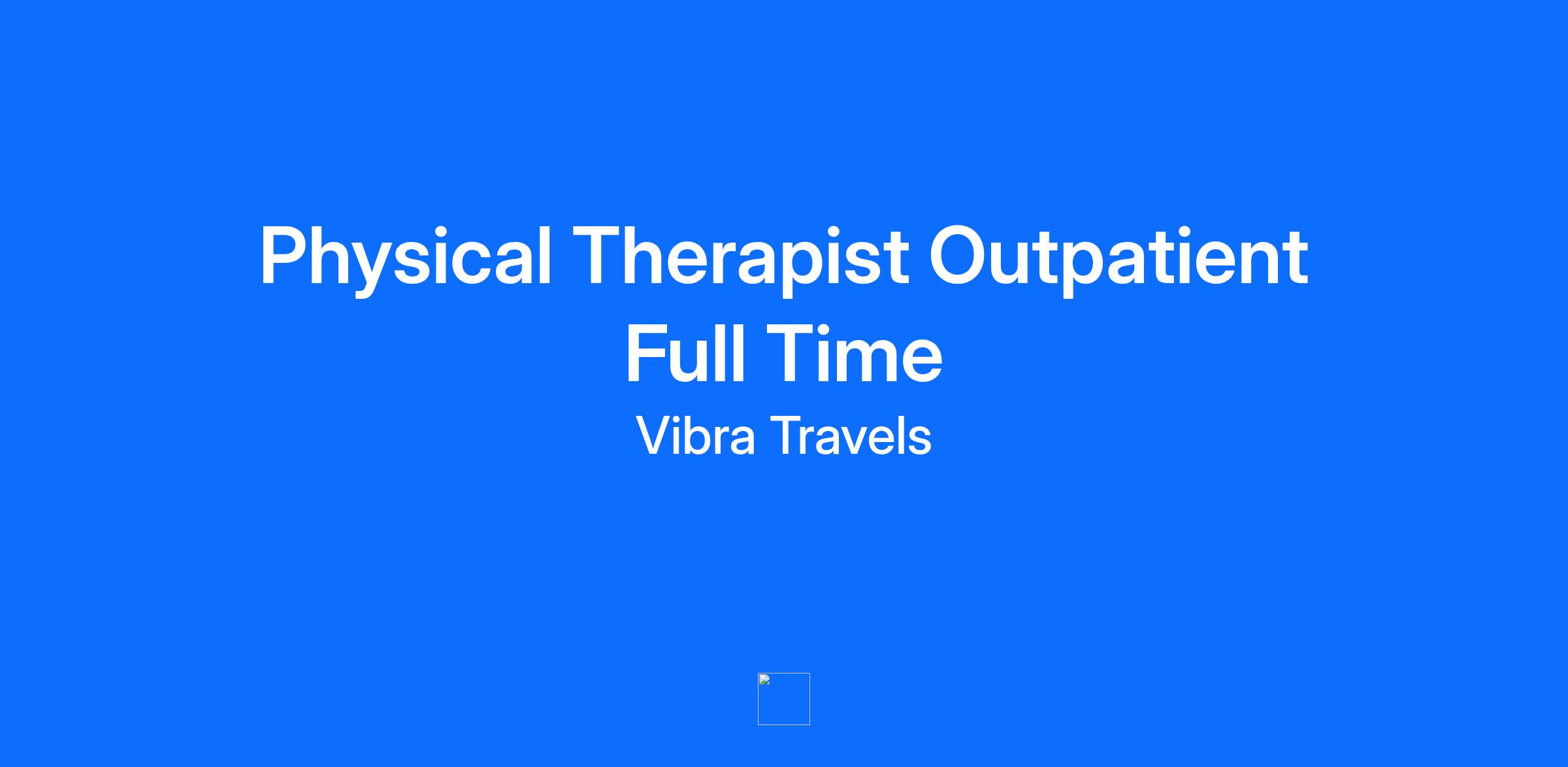 Overview We are seeking a Physical Therapist to join our team! Vibra Permanent Staffing is seeking a skilled and compassionate Outpatient Physical Therapist (PT) for a direct hire, full-time opportunity with one of our trusted outpatient therapy providers in Bristol, CT. In this role, you will evaluate and treat patients with a variety of conditions, helping them restore function and improve mobility in a supportive outpatient setting. Full Time - Outpatient Physical Therapist Opportunity! Select Physical Therapy 225 North Main Street Bristol, CT 06010 Responsibilities Responsibilities Complete and maintain all corporate and clinical services required training and maintain compliance with state/local/federal regulations Evaluate, treat, direct, and document treatment for patients Maintain open and respectful communication with colleagues, physicians, patients, family members and third-party payors Attend/participate in center meetings as directed by the center manager Qualifications Degree in Physical Therapy from an accredited school Current State physical therapist license or eligibility for licensure in the State of practice CPR certification