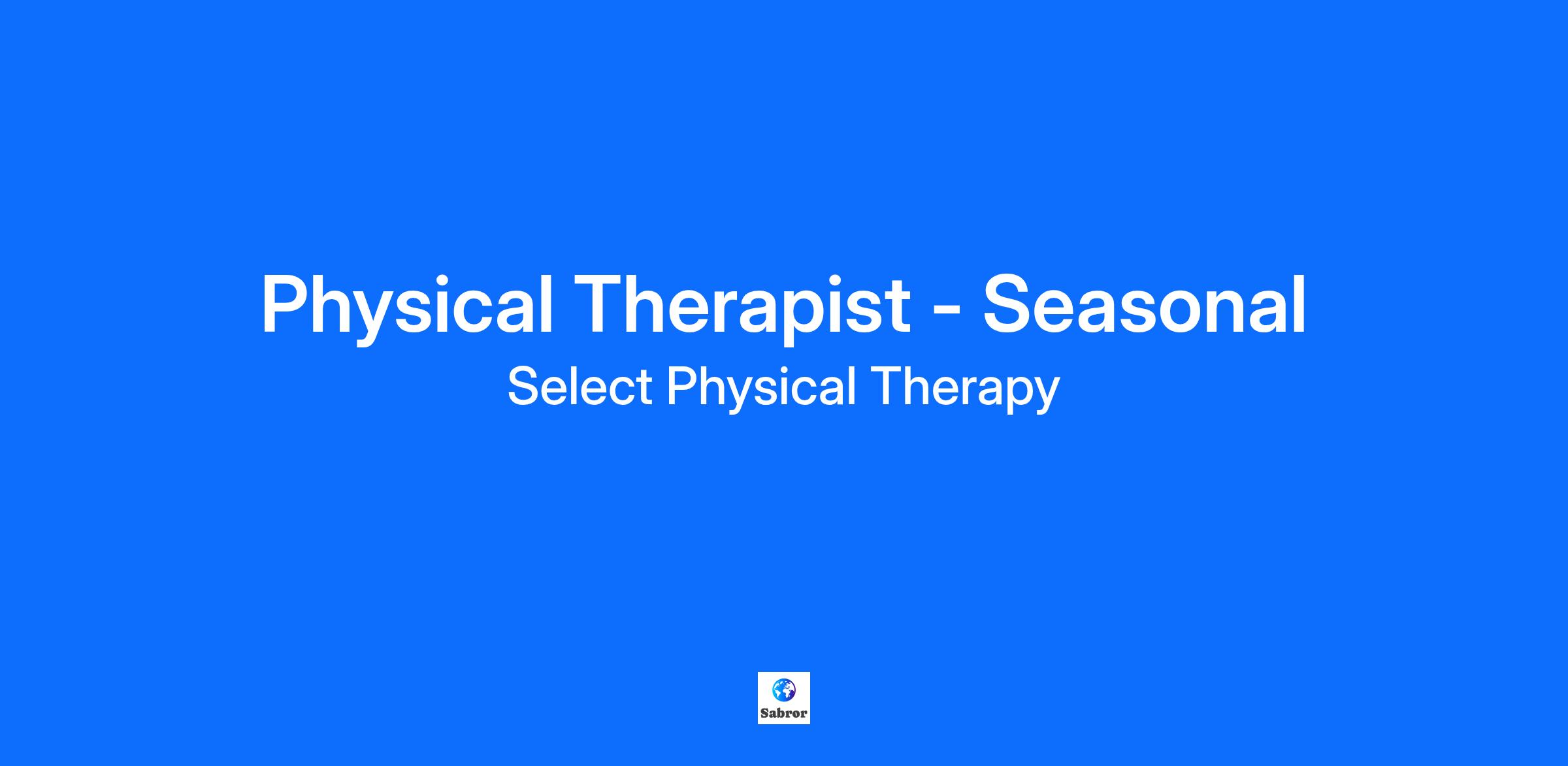Overview Physical Therapist - Seasonal Full Time Location: 3319 State Rd 7 suite 310 Wellington Florida 33477 Schedule: Seasonal (October-March Reoccuring), Full Time weekdays (Mon-Fri) Compensation: $50.00 - $52.00/hour We are seeking a Seasonal Physical Therapist to join our outpatient orthopedic team full time from the months of October to march. This position would be reoccurring every year. Why Work With Us? At Select Physical Therapy, we take pride in creating an exceptional patient experience and helping our patients get back to athletics, work, life, and the things they love. PRN Perks: Continuing Education: Free in-person and online CEUs to keep learning Career Growth: Access to a nationwide, professional support network 401(k): Company matching 401(k) after 1,000 hours in a calendar year Diversity: Work with a variety of team sizes, patient populations, and specialties Fostering Well-Being: We offer benefits that support the financial, work/life, and emotional well-being of you and your family members. Responsibilities Deliver exceptional rehabilitation: evaluate, treat, direct, and document Stay compliant with state, local, and federal regulations Communicate openly with colleagues, patients, families, and physicians Participate in team meetings Qualifications Degree in Physical Therapy from an accredited school Current State physical therapist license or eligibility for licensure in the State of practice CPR certification Additional Data If you’re passionate about helping others and value flexibility, apply today! Equal Opportunity Employer/including Disabled/Veterans