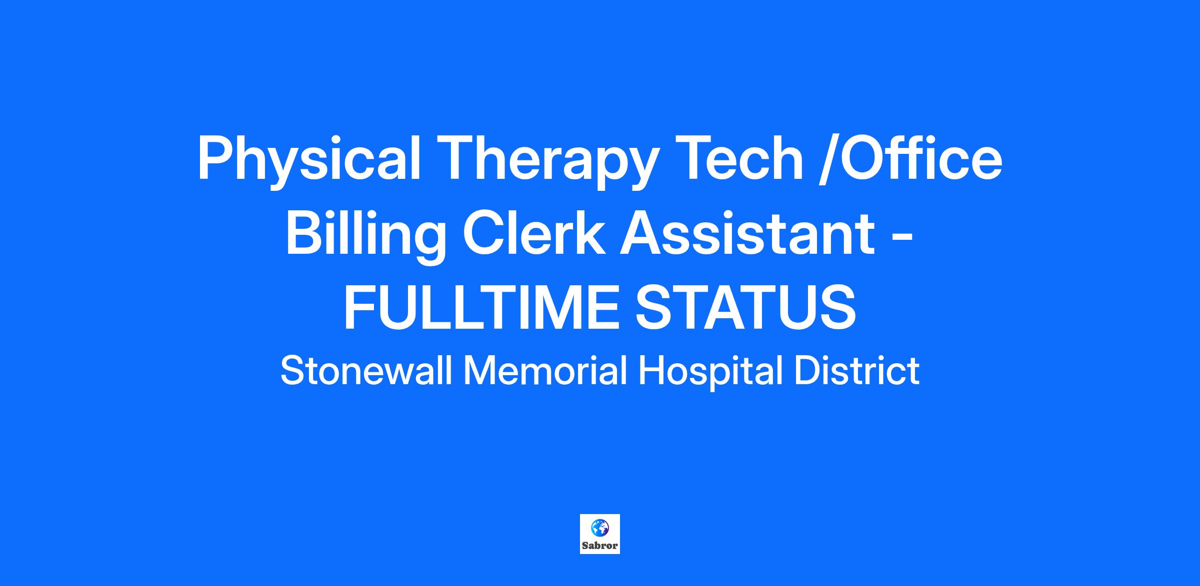 Join the dedicated team at Stonewall Memorial Hospital District Therapy Department as a full-time Physical Therapy Tech/Office Billing Clerk Assistant. This is an excellent opportunity to contribute to patient recovery and well-being within a supportive and professional healthcare environment. We offer competitive wages and benefits, with pay rates depending on experience and skills.