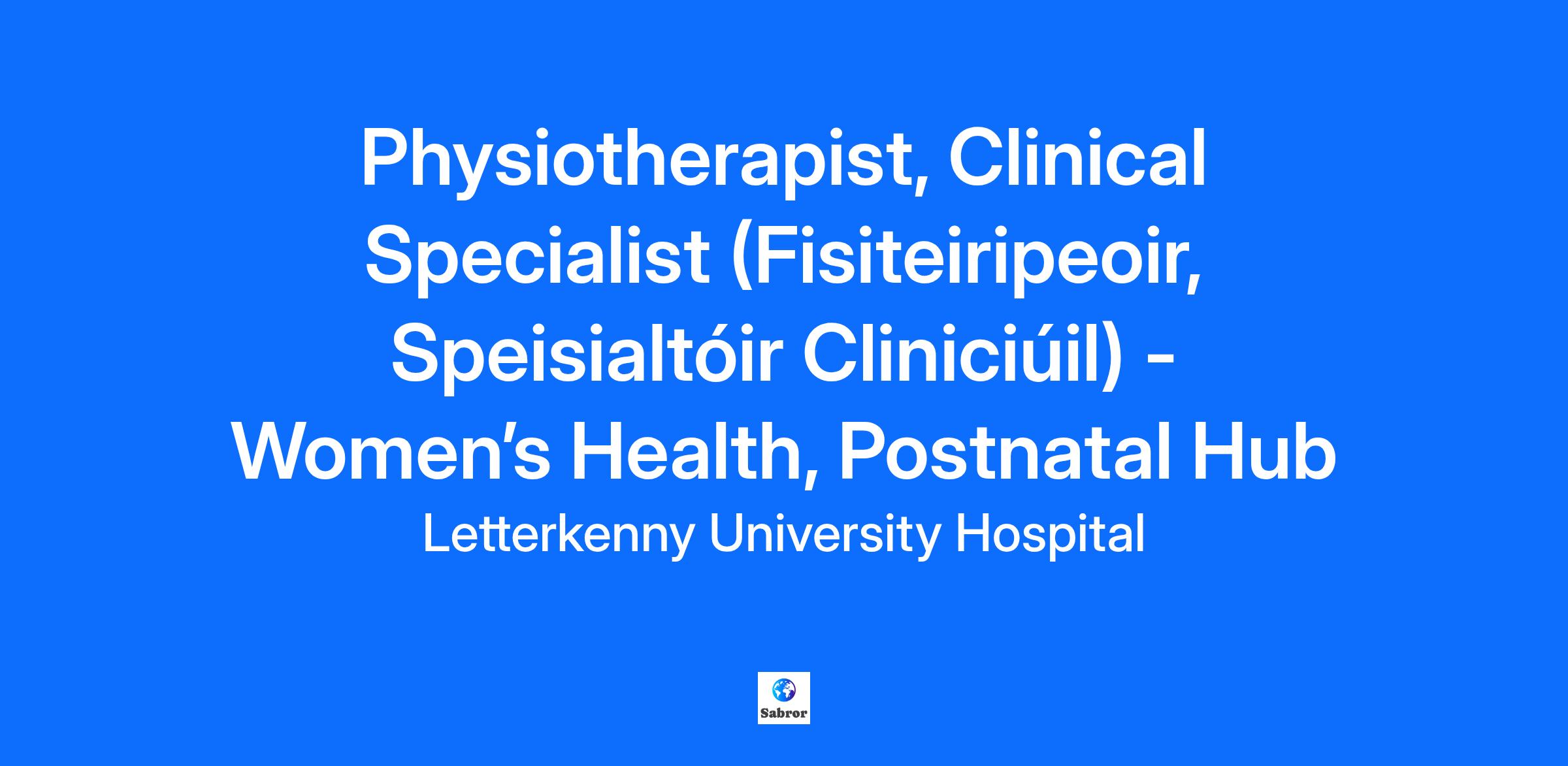 · Work as a Clinical Specialist Physiotherapist within the Postnatal Community Hub service and the associated remit of other services e.g. GP/PHN.