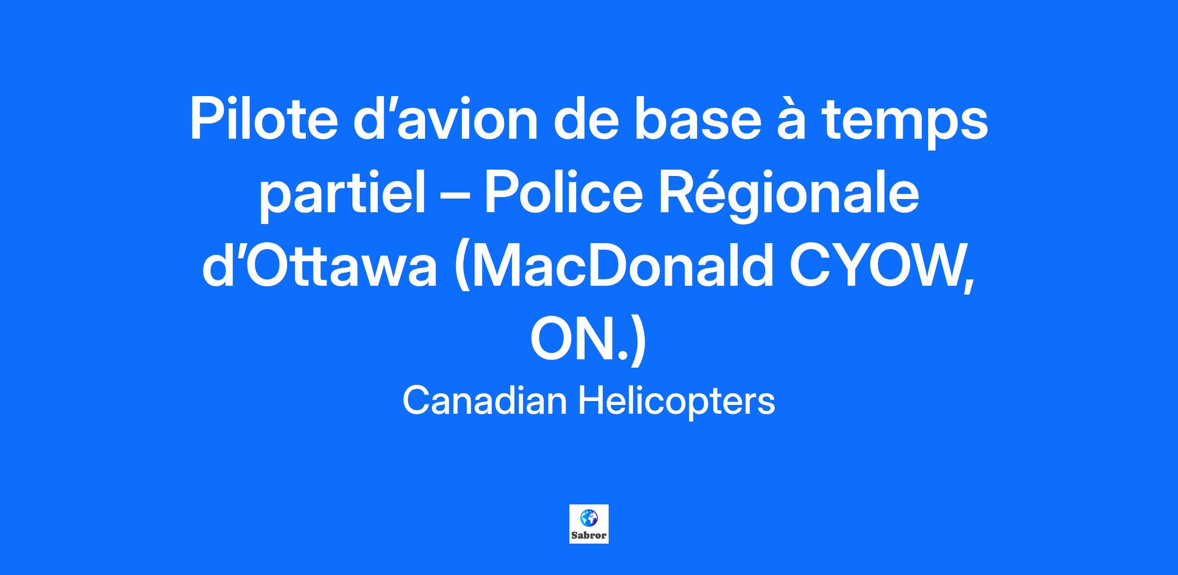 Pilote d’avion de base à temps partiel – Police Régionale d’Ottawa (MacDonald CYOW, ON.)
