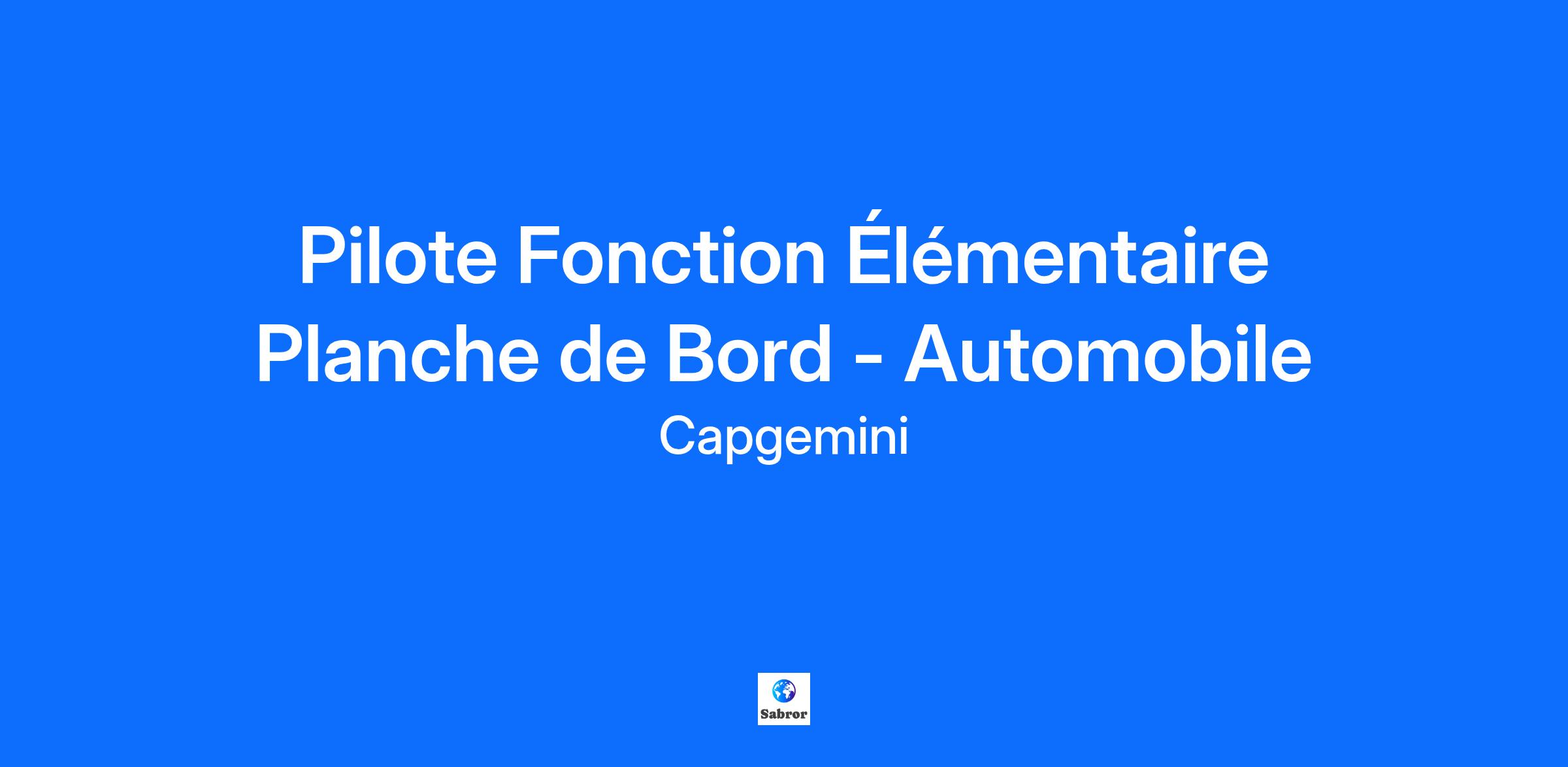 Capgemini Engineering, leader mondial des services d'ingénierie , rassemble des équipes d'ingénieurs , de scientifiques et d'architectes pour aider les entreprises les plus innovantes dans le monde à libérer leur potentiel . Des voitures autonomes aux robots qui sauvent des vies, nos experts en technologies digitales et logicielles sortent des sentiers battus en fournissant des services uniques de R&D et d'ingénierie dans tous les secteurs d'activité . Rejoignez nous pour une carrière pleine d'opportunités , où vous pouvez faire la différence et où aucun jour ne se ressemble Vos Missions Dans le cadre du développement de son positionnement d’expertise, la division automobile d’Ile-De-France, recrute un(e) Pilote fonction Planche de bord. Vous êtes acteur du métier dans le domaine de l’automobile. Garant du positionnement et porteur de la vision métier sur votre périmètre d’activité, vous collaborez à la fois, avec les équipes projets clients et avez pour rôle de: Piloter la convergence QCDP de la planche de bord. Etre le garant du management des entrées de charges. Piloter la réalisation des attendus et des livrables. Piloter les équipes sur le périmètre technique confié. Etre l’interface avec les différents interlocuteurs (ingénierie, achats, fournisseurs, logistique, production, etc.). Assurer un reporting efficace et régulier de son activité. Assurer la convergence avec l’usine et les sites fournisseurs Votre Profil De formation Bac+5 (Ingénieur) vous justifiez d’expérience en tant que Leader Ingénierie et ou Pilote fonction dans le domaine Automobile. Vous avez fait vos preuves sur des fonctions similaires sur le produit planche de bord ou autre chez un constructeur ou un équipementier. Vous maitrisez les outils standards du domaine (Excel, NEW PDM, LUP,CATIA V5/V6 ...). Vous êtes reconnu pour votre capacité à proposer des solutions techniques robustes et votre capacité à travailler en équipe. Votre aisance en anglais est un plus dans vos activités. Minimum 2 ans sur une fonction similaire / 8 ans dans le domaine automobile 3 raisons de nous rejoindre Qualité de vie au travail : accord de télétravail en France et à l’international, accord sur l’égalité professionnelle, la parentalité, l’équilibre des temps et la mobilité durable. Apprentissage en continu : certifications et formations en libre accès, accompagnement sur mesure avec votre career manager, parcours d’intégration sur 9 mois. Avantages groupe & CSE : plan actionnariat, activités à tarifs préférentiels, remboursement partiel vacances, remboursement de votre abonnement sportif ou culturel. Nos engagements et priorités Le groupe Capgemini encourage une culture inclusive dans un cadre multiculturel et handi-accueillant. En nous rejoignant, vous intégrez un collectif qui valorise la diversité, développe le potentiel de ses talents, s’engage dans des initiatives solidaires avec ses partenaires, et se mobilise pour réduire son impact environnemental sur tous ses sites et auprès de ses clients. #LI-UC1Skills (competencies) Verbal CommunicationLeader mondial des services d’ingénierie et de R&D, Capgemini Engineering met en oeuvre une connaissance sectorielle approfondie avec la maîtrise des dernières technologies digitales et logicielles pour accompagner la convergence des mondes physique et numérique. Avec plus de 55 000 ingénieurs et scientifiques dans plus de 30 pays, nous aidons nos clients à accélérer leur transformation vers l'Intelligent Industry. Get The Future You Want* |www.capgemini.com/fr fr *Capgemini, le futur que vous voulez