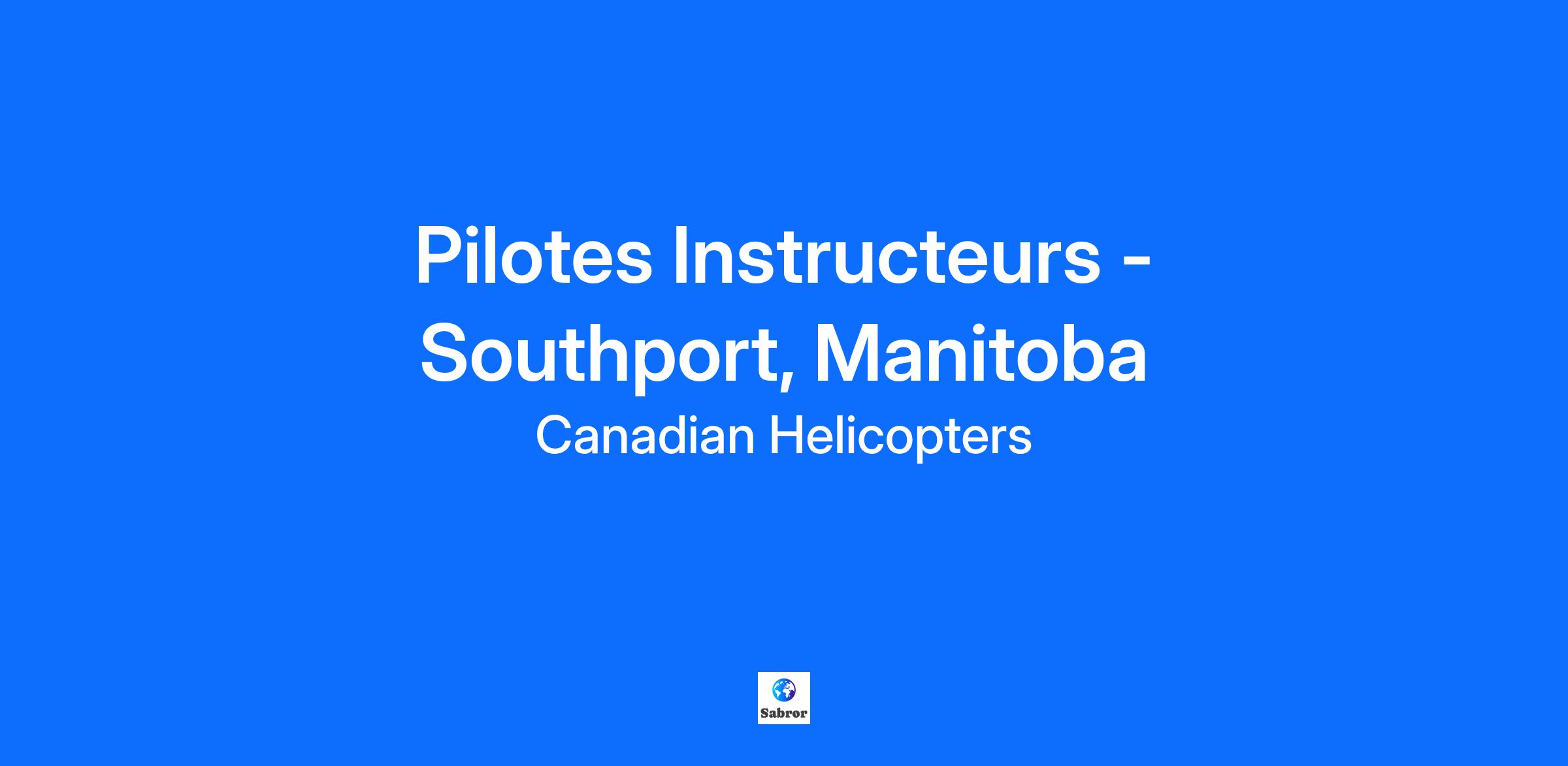 Pilotes Instructeurs - Southport, Manitoba