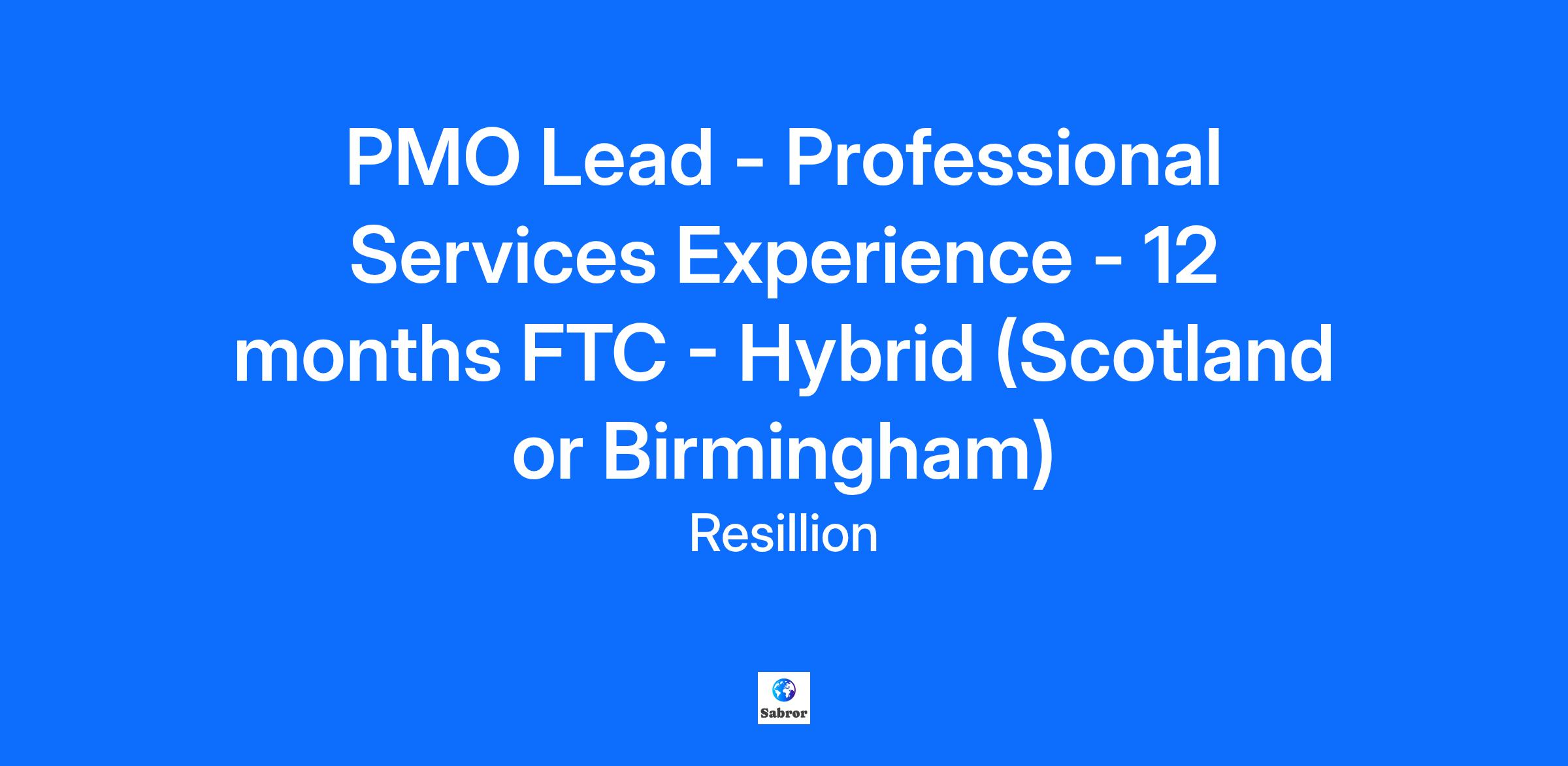 Job Title: PMO Lead - Operations Support (12-Month Fixed-Term Maternity Cover) - Professional Services