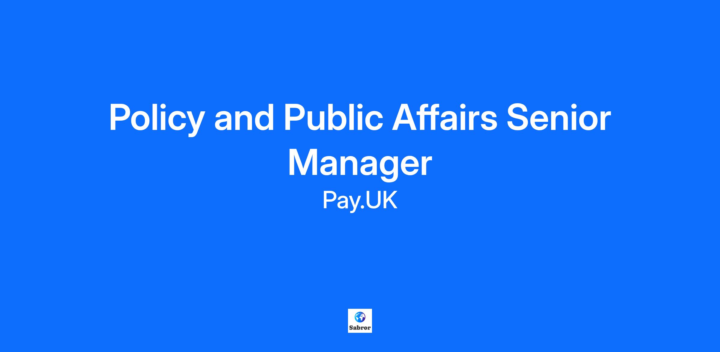Policy and Public Affairs Senior Manager, London, Permanent In this pivotal role, you’ll develop and implement a public affairs strategy, working closely with the Chief Policy & Engagement Officer and Head of Policy & Public Affairs. Your skills will help us effectively advocate for our policy positions and provide actionable insight on political and ecosystem trends to senior leaders. You’ll represent Pay.UK externally, building strong relationships within our ecosystem and with politicians, civil servants, and industry bodies, while developing strategies that align with our business priorities. Key Accountabilities: Develop and implement a public affairs strategy that builds trust within our ecosystem and supports Pay.UK’s corporate strategy Develop and maintain trusted relationships with government, parliamentary stakeholders, policymakers, industry forums and trade associations Develop and implement robust reporting and measurement frameworks to track advocacy progress, assess policy impact, and provide timely, insightful updates to senior leaders and the board on political and reputational developments Drive and contribute to Pay.UK's thought leadership agenda, leveraging internal expertise to enable the production of compelling policy papers and insights that position Pay.UK as a neutral, credible, and expert voice in payments policy Identify opportunities to contribute to and shape public policy debates which will enhance Pay.UK’s reputation. Represent Pay.UK in external working groups, trade associations and cross-industry forums Work closely with directorates across the business to ensure alignment with strategy and policy positions Encourage a culture that values collaboration, teamwork, and data-driven external engagement Promote and support the participation of Pay.UK executives and senior colleagues in key industry events, forums, roundtables and panels. Skillfully and credibly represent Pay.UK at external meetings, speaking events, forums and conferences. Supporting campaigns to advocate for changes in public policy and increase awareness of key issues Deputise for the Head of Policy and Public Affairs as appropriate (including with external stakeholders). Qualifications, Skills and Experience Degree-level education or equivalent experience Demonstrated knowledge and experience in public affairs, particularly in environments governed by UK regulations, with significant experience in partnerships with government officials, policymakers, trade groups, and think tanks Experience in developing and executing public affairs strategies Proven ability to grasp the dynamics of a complex political, regulatory, and economic landscape, and translate this understanding into clear, actionable recommendations for senior leadership Highly effective communication and presentation skills - able to convey complex messages clearly and persuade diverse stakeholders Ability to coordinate, provide direction, and ensure high-quality, timely outputs from colleagues Proficient in organisational and project management tasks, especially in coordinating and managing workstreams that contribute to larger initiatives Experience in other Financial Market Infrastructures (FMIs) or similarly regulated sectors (e.g., financial services, energy, telecoms) would be an advantage. At Pay.UK, we value diversity and inclusivity. Research has shown that candidates from underrepresented groups may hesitate to apply unless they meet all the requirements listed. We encourage all qualified candidates to apply, regardless of how closely their skills and experience match the requirements. We are committed to supporting accessibility needs and creating a welcoming environment for all employees. Become part of our team and contribute to the creation of an inclusive work environment that values everyone's unique input. Who we are Pay.UK maintains and develops the UK retail payment systems and standards that are core to the economy being able to function on a day-to-day basis. From Bacs to Faster Payments and cheques – we act as the single operator for all UK retail payments. We put the needs of consumers and businesses at the heart of everything we do, working in the public interest to ensure that the systems the country relies on for its banking transactions are safe, open, innovative and resilient. Our payment systems underpin the services that enable funds to be transferred between people and institutions. In 2024, the UK's retail payment systems processed 11 billion transactions worth over £10 trillion through Bacs Direct Credit, Direct Debit, Faster Payments, and cheques, and our Current Account Switch Service has facilitated over 9 million switches since it’s launch in 2013. Every day, individuals and businesses use the services we provide to get their salaries, pay their bills and make online and mobile banking payments. Our vision for the future is to enable a vibrant economy, with Pay.UK delivering the best-in-class payment infrastructure and standards for the benefit of consumers and businesses nationwide. Benefits & Additional Information 12% Non-contributory pension Discretionary annual bonus 30 days annual leave (excluding bank holidays) Private medical insurance, life assurance, income protection, health cash plan, dental insurance, Bupa medicals etc Employee assistance programme Cycle to Work Scheme Season ticket loan Annual fitness subsidy of up to £500 per annum Working from home policy - minimum 40% in the office (eg. 2 days in the office over a 5 day working week) Please note: Some of our benefits are only available to colleagues upon successful completion of the probationary period.