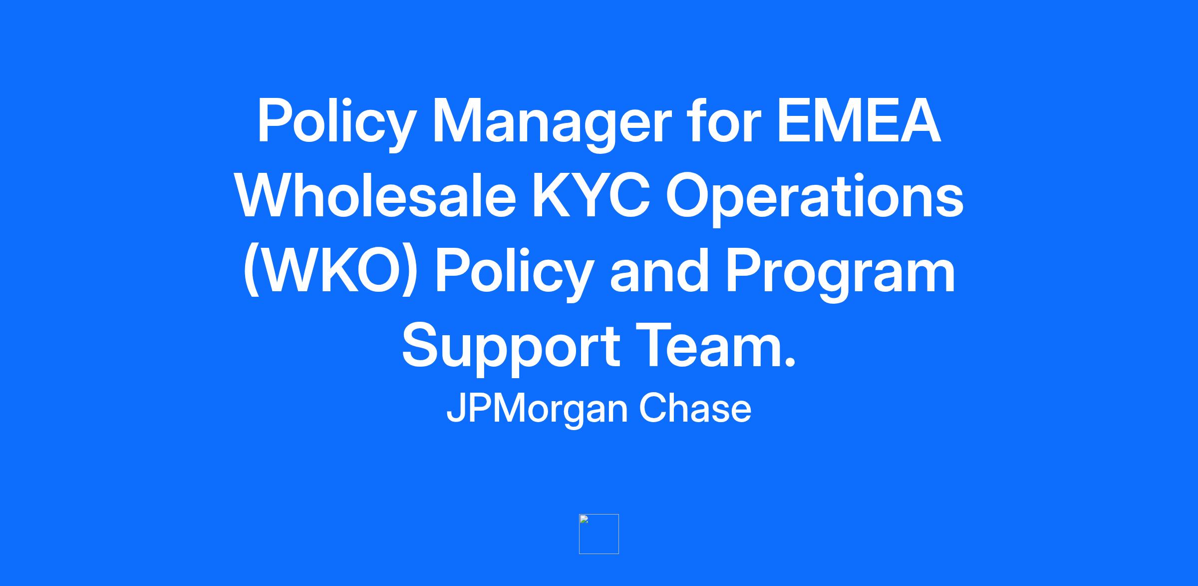 Join JPMorgan Chase and leverage your expertise in a pivotal role within the EMEA Wholesale KYC Operations (WKO) Policy and Program Support Team. As a Policy Manager within EMEA Wholesale KYC Operations (WKO) Policy and Program Support Team, you will contribute to responsible business growth by anticipating and addressing new and emerging risks. Your expert judgment will be crucial in solving real-world challenges that impact our company, customers, and communities. You will be a key player responsible for interpreting the firm’s new and changing global policies and related requirements derived from regulatory guidance across our EMEA operations. This is a key position focused on building and managing relationships with both internal and external stakeholders across EMEA Job Responsibilities Proactively monitor and interpret changes in EMEA AML/KYC regulations and guidance. You will assess the impact of these changes on our policies and operations, and work with relevant teams to implement necessary updates in a timely and effective manner; ensuring that WKO KYC business practices, procedures, and technological capabilities satisfy the Firm-wide KYC Standards Cultivate and maintain strong relationships with key stakeholders, including internal business leaders, and colleagues in the Second Line of Defense (2LOD) Compliance, Risk and Legal teams across various European countries. You will serve as a liaison between the business and compliance, translating complex regulatory requirements into actionable business guidance Support business initiatives within specific KYC disciplines Perform gap assessment of updates to current KYC processes, define associated changes to guidance and procedures, ensure implementation within the WKO Change Management process Directly shape operational and/or functional execution (by being viewed as a SME). Oversee/manage new sustainable processes and enhancements while ensuring proper controls/oversight are in place to mitigate risk support, etc). Required qualifications, capabilities, and skills Strong and effective communication and interpersonal skills to develop relationships at multiple levels of seniority Results-oriented individual that can deliver high-quality deliverables under tight deadlines Minimum of 5 years’ experience in AML/KYC, Compliance, Risk or Audit. Knowledge of the regulatory landscape and understanding of country-specific regulatory challenges Ability to understand and interpret the impact of policy and procedural changes, as well as identify and convey potential problem areas Understand the policy implementation cycle within a large financial institution