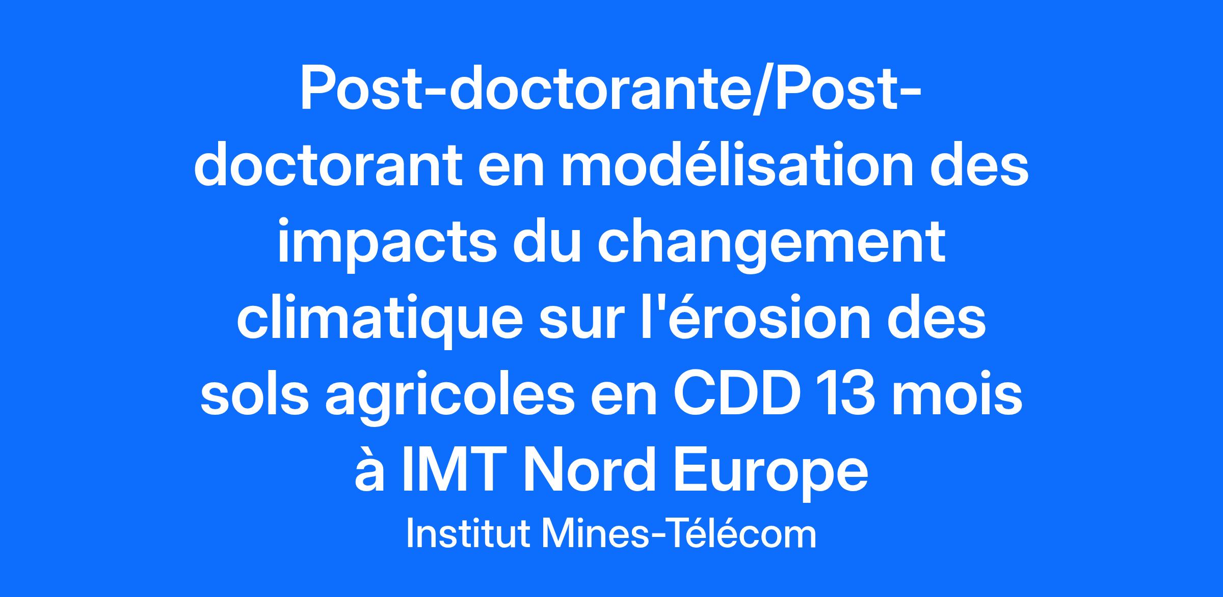 Unité : CERI MP Responsable hiérarchique : Mahfoud Benzerzour Responsable fonctionnel : Claire ALARY Catégorie : Chercheur post-doctorant Nature de l’emploi : CDD post-doctorat Lieu de travail : DOUAI, Centre de recherche de IMT NE Contexte : École sous tutelle du ministère de l’économie, des finances et de la souveraineté industrielle et numérique, IMT Nord Europe est née en 2017 de la fusion de Télécom Lille et de l’École des Mines de Douai. Elle compte aujourd’hui parmi les plus Grandes Écoles d’ingénieurs au Nord de Paris avec plus 2200 élèves, dont un quart d’apprentis, plus de 600 diplômés par an et un réseau de 15 000 diplômés. Elle fait partie de l’Institut Mines Télécom, premier groupe public de Grandes Écoles d’ingénieurs et de management de France, et est partenaire de l’université de Lille. IMT Nord Europe a 3 missions principales : former des ingénieurs responsables aptes à résoudre les grandes problématiques du XXIème siècle ; mener des recherches débouchant sur des innovations à haute valeur ajoutée ; soutenir le développement des territoires notamment en facilitant l’innovation et les créations d’entreprises. Son objectif est de former les ingénieurs de demain, maîtrisant à la fois les technologies numériques et les savoir-faire industriels. Idéalement située au carrefour de l’Europe, à 1 heure de Paris, 30 minutes de Bruxelles et 1H30 de Londres, IMT Nord Europe a l’ambition de devenir un acteur majeur des grandes transformations industrielles, numériques et environnementales du XXIème siècle en combinant, tant dans ses enseignements et que dans sa recherche, les sciences de l’ingénieur et les technologies du digital. Localisée sur 2 sites principaux d’enseignement et de recherche, à Lille et à Douai, IMT Nord Europe s’appuie sur plus de 20 000 m² de laboratoire pour développer un enseignement de haut niveau et une recherche d’excellence dans les trois domaines « Systèmes Numériques », « Energie Environnement » et « Matériaux et Procédés ». Pour plus de détails, consulter le site internet de l’École : www.imt-nord-europe.fr. Le poste est à pourvoir au sein du CERI MP Contexte du sujet : Le poste proposé s’inscrit dans le cadre du projet ECRIN (Environnement Climat – Recherche et INnovation), programme structurant du Contrat de Plan État-Région (CPER 2021–2027) en Hauts-de-France. ECRIN mobilise un large consortium pluridisciplinaire autour de l’étude des effets du changement climatique sur les milieux, les écosystèmes et la santé humaine. Il vise à produire des connaissances scientifiques intégrées, soutenir des stratégies d’adaptation et favoriser l’innovation territoriale. Le projet se structure autour de quatre volets principaux ; Physico-chimie de l’environnement, Adaptation et atténuation, Impacts sur la santé humaine et les écosystèmes et Transfert d’innovation et interaction avec les acteurs du territoire. Le post-doctorat proposé participe pleinement au volet « Adaptation et atténuation », en modélisant les impacts du changement climatique sur l’érosion des sols agricoles – enjeu crucial pour la durabilité des agroécosystèmes régionaux. Il contribue également aux objectifs transverses d’ECRIN en combinant données climatiques, outils de modélisation avancés et interactions avec les dynamiques territoriales agricoles. Dans le cadre d’un précédent projet GeSS (Gestion des Sédiments à la Source), projet consistant à améliorer la compréhension des phénomènes d’érosion hydrique des sols agricoles dans la région Hauts-de-France, la notion de changement climatique a été abordée après que les liens entre quantité de pluie et réponse sédimentaire aient été bien compris et détaillés. Une exploration préliminaire a été effectuée mêlant 1. l’utilisation de données climatiques du projet Explore 2 (Drias), 2. la modélisation des flux hydrosédimentaires (à partir du modèle WaterSed), et 3. l’utilisation des données acquises sur le site d’étude (petit bassin de La Pommeroye (54 ha), bassin de la Canche, Hauts de France). Cette première approche a montré que, dans le cas d’événements de saturation du sol en eau — responsables de la majorité des flux sédimentaires observés sur le terrain — le changement climatique tend à accroître fortement la fréquence des événements érosifs extrêmes, d’autant plus que le scénario envisagé est pessimiste (RCP8.5) et que l’on se projette vers des horizons temporels lointains, comme celui de 2070 (Thèse M. Delaporte, 2024). Cependant ce travail doit être conforté, dans la mesure où il s’appuie sur un unique modèle climatique, une seule typologie d’événements pluvieux et une échelle géographique restreinte. L’objectif est alors de continuer le suivi terrain sur 2 BV de taille différente et d’augmenter les simulations en considérant un changement d’échelle. Il s’agira de multiplier les origines des données climatiques utilisées en s’appuyant sur différent modèles. Mais aussi, potentiellement, de considérer différents modèles d’érosion afin de vérifier que les tendances ne sont pas modèles dépendants. Enfin, la notion de risque pourra être abordé en faisant le focus sur les évènements les plus extrêmes. Missions : Suivi des flux hydro-sédimentaires sur le terrain : • Collecte des données • Veille au bon fonctionnement du matériel sur le terrain 2. Amélioration de la modélisation érosive / changement climatique : • Intégrer des données issues de multiples modèles climatiques · Élargir l'analyse à différents scénarios d'émissions • Implémenter et comparer plusieurs modèles d'érosion • Valider les tendances observées et réduire les biais modèles-dépendants 3. Analyse des événements extrêmes : • Étudier spécifiquement les événements orageux intenses •