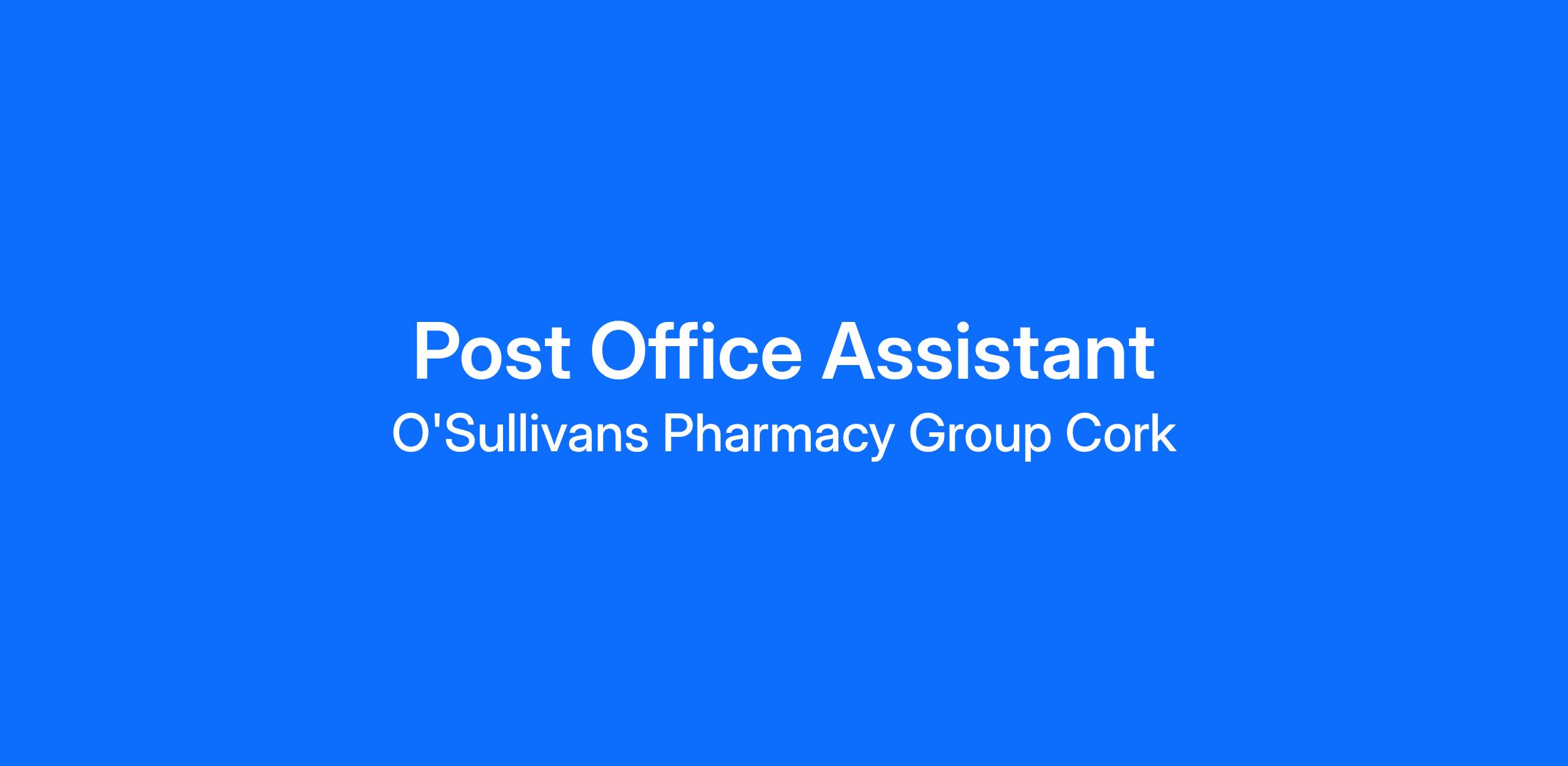 We are hiring for a Post Office Assistant for 1 days per week in our Post Office in Ballinlough, Cork.