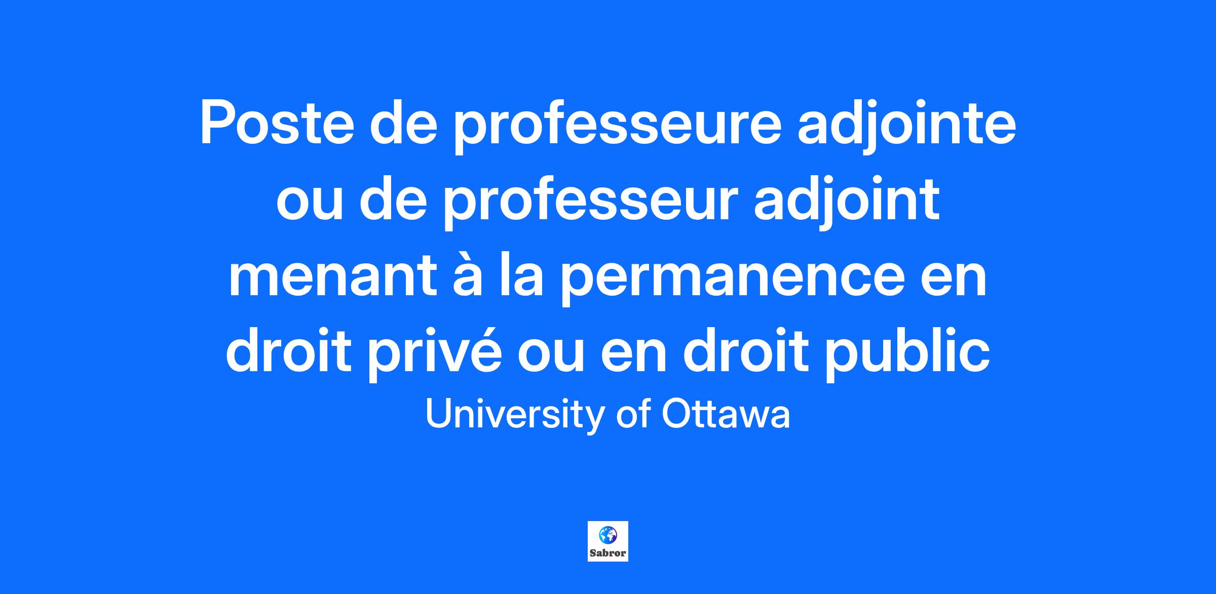 La Section de droit civil de l’Université d’Ottawa sollicite des candidatures pour un poste de professeure au rang d’adjointe ou de professeur au rang d’adjoint menant à la permanence dans les domaines du droit privé ou du droit public.