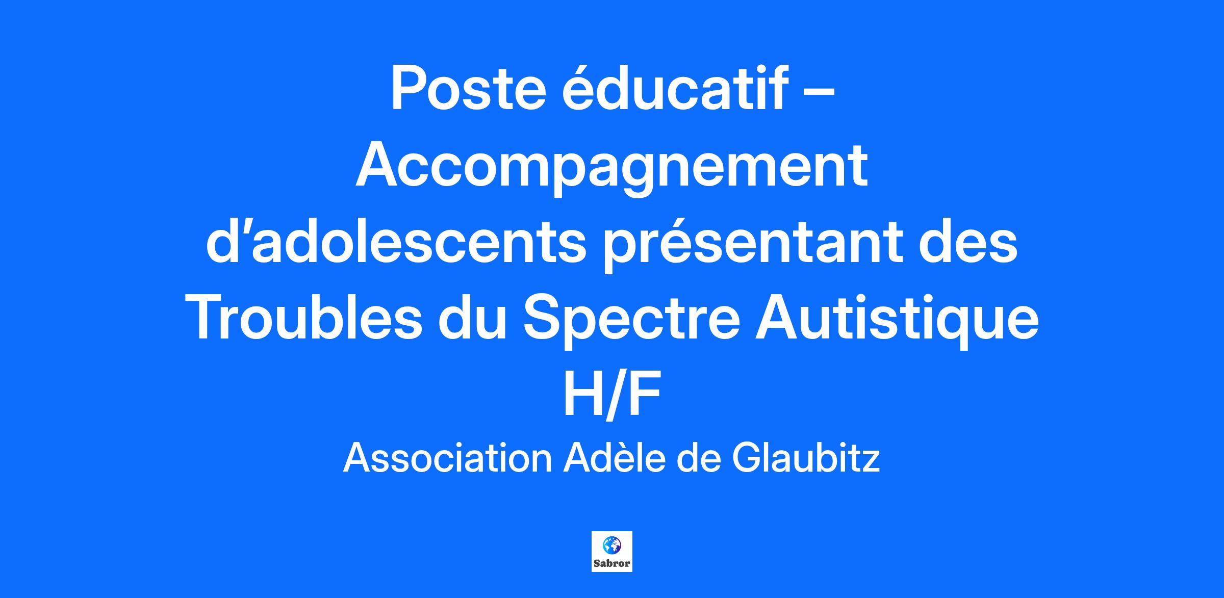 Faites de votre talent un métier ! Rejoignez l'Association Adèle de Glaubitz et donnez du sens à votre engagement Qui sommes-nous ? L'Association Adèle de Glaubitz est un acteur fort du secteur social, médico-social et sanitaire. Avec 41 établissements et services répartis sur le territoire alsacien, nous accompagnons au quotidien 2000 enfants, adultes et personnes âgées en situation de handicap, de grande dépendance ou en protection de l'enfance. Notre mission : co-construire un accompagnement personnalisé, centré sur l’humain, en s’appuyant sur des valeurs de solidarité, de bienveillance et d'engagement. Notre établissement L’Institut Saint-Joseph, situé à Colmar, accueille des enfants et adolescents en situation de handicap dans le cadre d’un accompagnement éducatif, thérapeutique et pédagogique. Nous recrutons : Poste éducatif (H/F) – Accompagnement d’adolescents présentant des Troubles du Spectre Autistique Lieu : Institut Saint-Joseph – Service IMPRO – Colmar Type de contrat : CDI – Temps plein (35 heures) Rémunération : Selon la Convention Collective Nationale du 15 mars 1966 et en fonction de l’expérience. Date de prise de poste : Dès que possible Vos missions Sous la responsabilité de la direction et du chef de service, et au sein d’une équipe pluridisciplinaire, vous intervenez auprès de jeunes en situation de handicap à l’IMPRO : Accompagner des adolescents en situation de handicap, avec une attention particulière aux Troubles du Spectre Autistique (TSA). Mettre en œuvre des projets éducatifs individualisés favorisant l’autonomie, l’inclusion et le développement des compétences sociales. Collaborer étroitement avec l’équipe pluridisciplinaire (éducateurs, psychologues, orthophonistes, enseignants, etc.) pour assurer la cohérence des interventions. Participer activement à la vie institutionnelle et aux réunions de coordination afin de contribuer à la qualité du projet éducatif global. Votre profil Formation et expérience : Vous disposez d’une formation ou d’une expérience significative dans le domaine éducatif et/ou médico-social. Compétences attendues - Connaissance des troubles du spectre autistique (TSA). - Capacité à élaborer et mettre en œuvre des projets éducatifs individualisés. - Aptitude à travailler en équipe pluridisciplinaire (psychologues, enseignants, orthophonistes…). Qualités personnelles - Sens du relationnel et écoute active. - Organisation, rigueur et adaptabilité. - Bienveillance et respect des valeurs humaines. Pourquoi nous rejoindre ? Une association engagée et porteuse de valeurs humaines fortes Un environnement de travail pluridisciplinaire et dynamique Des perspectives d'évolution et de formations Nos avantages Mutuelle santé Avantages CSE Participation aux frais de transport collectif (train, bus) sous conditions. Nous avons hâte de vous rencontrer et de partager l'aventure avec vous !