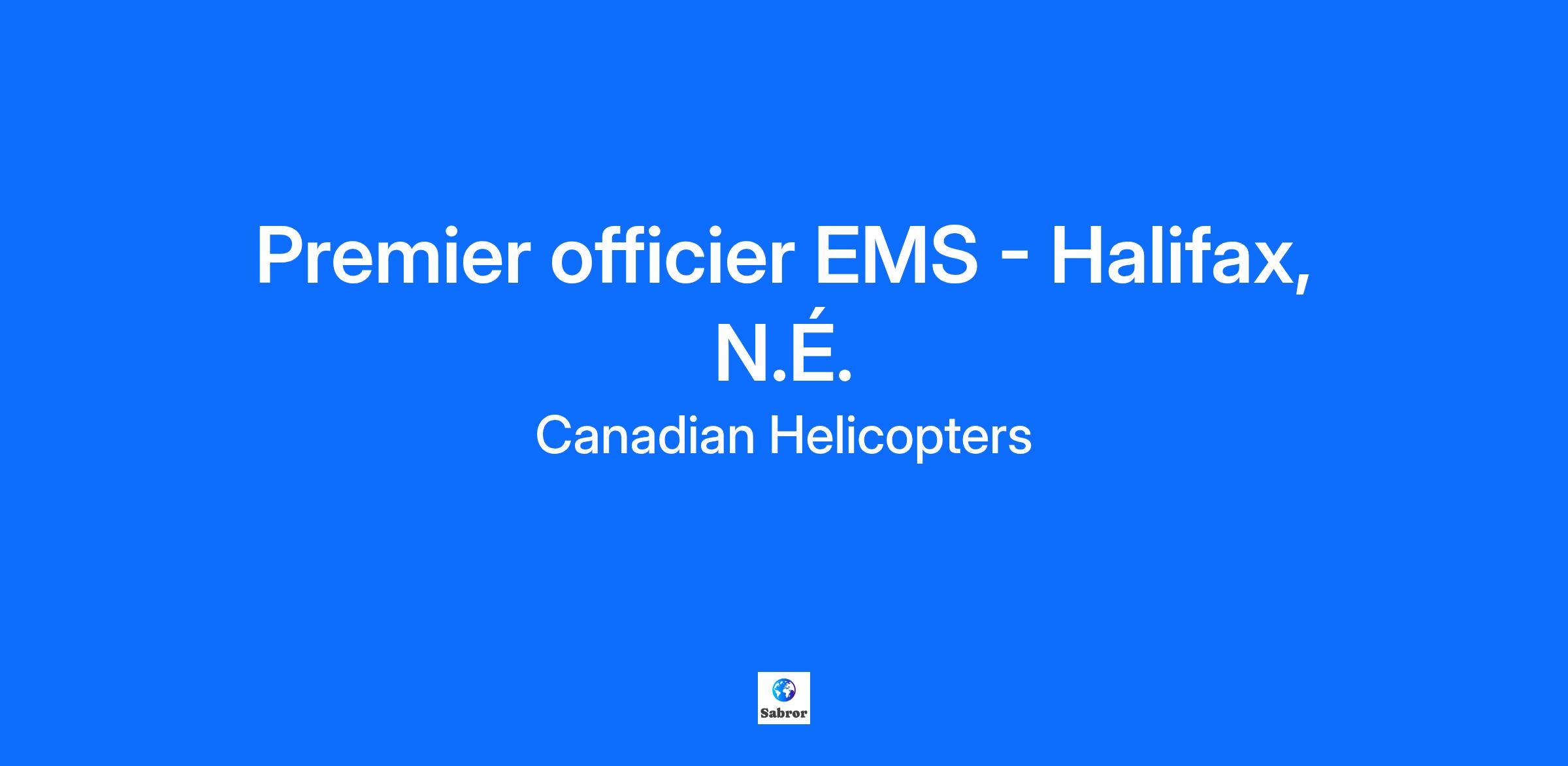 Le premier officier relève du gestionnaire de la base EMS d'Halifax. Ce poste offre au candidat retenu la possibilité de faire partie intégrante de l'équipe aéronautique d'EHS LifeFlight, en Nouvelle-Écosse.