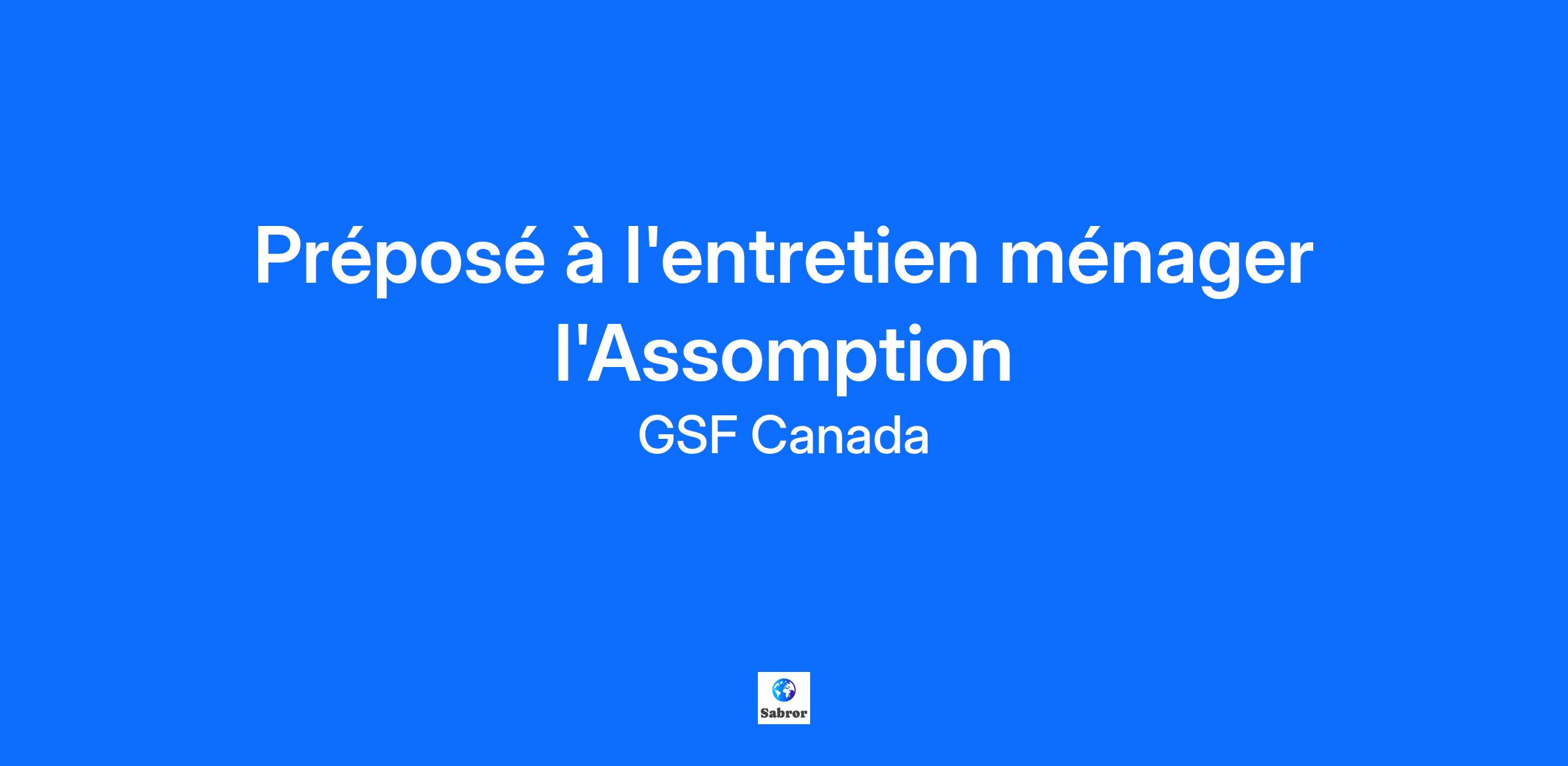 À propos de l'entreprise GSF Canada est un leader dans l'entretien ménager industriel et commercial ainsi que la maintenance de bâtiments. Nous nous engageons à offrir à nos employés et clients un environnement sûr, fonctionnel et accueillant. En pleine expansion, nous recherchons des préposés à l'entretien ménager pour rejoindre notre équipe dynamique. Chez GSF Canada, nous croyons fermement à la valorisation de la profession de l'entretien ménager. Nous nous efforçons de changer la perception du secteur en mettant en avant l'importance cruciale de ce métier pour le bien-être et le fonctionnement optimal des environnements de travail et de vie. Nous investissons dans la formation continue, l'innovation technologique, et le développement de carrières pour nos employés, afin de rehausser les standards de l'industrie et de reconnaître le rôle vital des professionnels de l'entretien ménager au Canada. Rejoignez la famille GSF et bénéficiez de notre plateforme de formation interne, Université GSF, qui offre des opportunités de développement professionnel et de croissance individuelle. Description du poste Nous cherchons des préposés à l'entretien ménager pour nos équipes situées dans différentes régions du Canada. Sous la supervision du contremaître, vous serez responsable de diverses tâches d'entretien ménager selon les besoins de GSF Canada. Votre rôle sera crucial pour assurer la satisfaction de nos clients et la propreté des sites, grâce à une variété de travaux d'entretien ménager. Vos missions incluent : - Nettoyage général : Effectuer des tâches de nettoyage régulier des locaux, incluant le balayage, l'aspirateur, le nettoyage des surfaces et des sanitaires. - Entretien des sols : Nettoyage et entretien des sols, incluant le lavage, le décapage et le cirage. - Gestion des déchets : Collecte et élimination des déchets conformément aux politiques de l'entreprise. - Utilisation de nouvelles technologies : Travail avec des technologies innovantes telles que la cobotique pour améliorer l'efficacité des opérations de nettoyage. - Respect des normes de santé et de sécurité : Assurer que toutes les procédures de sécurité sont suivies pour garantir un environnement de travail sûr. Profil recherché - Formation : Diplôme d'études secondaires ou équivalent. Une formation en entretien ménager est un atout. - Expérience : Une expérience préalable dans un rôle similaire est préférée mais non obligatoire. Compétences : - Autonomie : Capacité à travailler de manière autonome et à gérer son temps efficacement. - Sens du détail : Attention aux détails pour assurer une propreté impeccable. - Polyvalence : Capacité à effectuer une large variété de tâches de manière autonome. - Communication : Bonnes compétences en communication pour interagir avec les pairs et les membres de l'équipe. - Innovation : Intérêt pour l'apprentissage et l'utilisation de nouvelles technologies dans le domaine de l'entretien ménager. Ce que nous offrons - Contrat : Ville de l'Assomption - Horaire : Lundi au vendredi de 8h00 à 12h00 (20 heures/semaine) - Salaire : 21,57$/h pour travaux lourds - Avantages : Assurance collective, opportunités de formation et développement via notre Université GSF Opportunités de Croissance Chez GSF Canada, nous croyons fermement en la croissance et le développement de nos employés. Grâce à notre Université GSF, vous aurez accès à des formations continues et des programmes de développement professionnel qui vous permettront de progresser au sein de l'entreprise. Nous valorisons le potentiel de nos employés et nous engageons à offrir des opportunités de carrière à long terme. Engagement de GSF Canada Chez GSF Canada, nous valorisons l'égalité des chances et nous nous efforçons de créer une équipe diversifiée reflétant la société canadienne. Nous travaillons à éliminer les obstacles à l'accessibilité en emploi et nous engageons à offrir un environnement de travail inclusif et équitable. Si vous avez besoin d'assistance pour rendre le processus de recrutement plus accessible, faites-le nous savoir. Des mesures d'adaptation peuvent être offertes à chaque étape du processus de recrutement. Tous les renseignements concernant les mesures d'adaptation demeureront confidentiels. Nous remercions tous les candidats pour leur intérêt. Seuls les candidats sélectionnés pour une entrevue seront contactés.