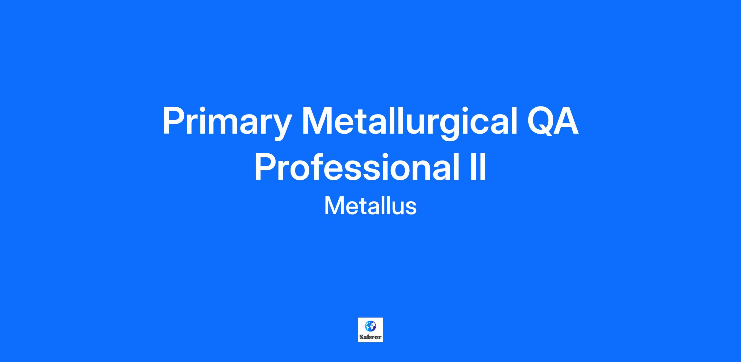 Joining the Metallus team means becoming part of a legacy that dates back over a century. We are an industry leader, manufacturing the cleanest steel in the world for companies in the industrial, aerospace and defense, automotive, and energy markets. Relocation will not be offered for this position. Purpose This position exists to provide expert level metallurgical knowledge to direct the chemical and testing application aspects of primary steelmaking for bar products and piercing mill billets. In this position the Primary Metallurgical QA Professional has technical oversight for the metallurgical process defined on every product. This position is responsible to ensure that every heat has a process route that satisfies a customer order/requirement, process review is performed, and nonconformance testing is added as needed according to standard 6.02.10. Production scheduling is performed so the individual operations are optimized based on shop conditions. Required to work rotating shift, overtime, and weekends as per business needs. Responsibilities Audit to ensure that hourly associates follow standard manufacturing processes, provide direction to melt shop supervision and hourly associates, answer questions, and offer guidance during unusual situations. Evaluate final chemistry and determine if heats meet customer requirements. Rate heats based on standards 42.09.01, 06.02.10, 06.01.03, work order requirements and Metallus mill order requirements. Responsible to document manufacturing processes nonconformances (Class 9 events) and actions taken per standard 06.02.10. Collect and report process data in the daily Heat Summary Report. Apply both standard and nonconformance testing. Responsible to adjust schedules to maintain productivity at the melt shop, bottom pour, caster, and rolling mill. Determine the lowest cost heat divert solution for off chemistry or manufacturing problem heats while maintaining the Metallus brand. Understand the cost of chemical elements added to steel and the differences between grades of steel. Communicate schedule changes to all affected departments. Participate in both internal and external customer audits. Learn and maintain proficiency on computer systems at FSP melt shop location as well as bottom pour and strand casting processes. Train new Turn Metallurgists. Work on a rotating shift basis. Minimum Qualifications High school diploma or equivalent with at least 7 years of experience in steel manufacturing. Preferred Qualifications Associate degree in engineering, technology, mathematics, science, business, supply chain management, or related with at least 4 years of experience in steel manufacturing. Bachelor degree in engineering, technology, mathematics, science, business, supply chain management, or related with at least 2 years of experience in steel manufacturing. The company prohibits harassment or discrimination against any employee on the basis of any status protected by law, including, but not limited to, race, religion, color, national origin, ancestry, age, disability, genetic information, gender, sex or veteran status.