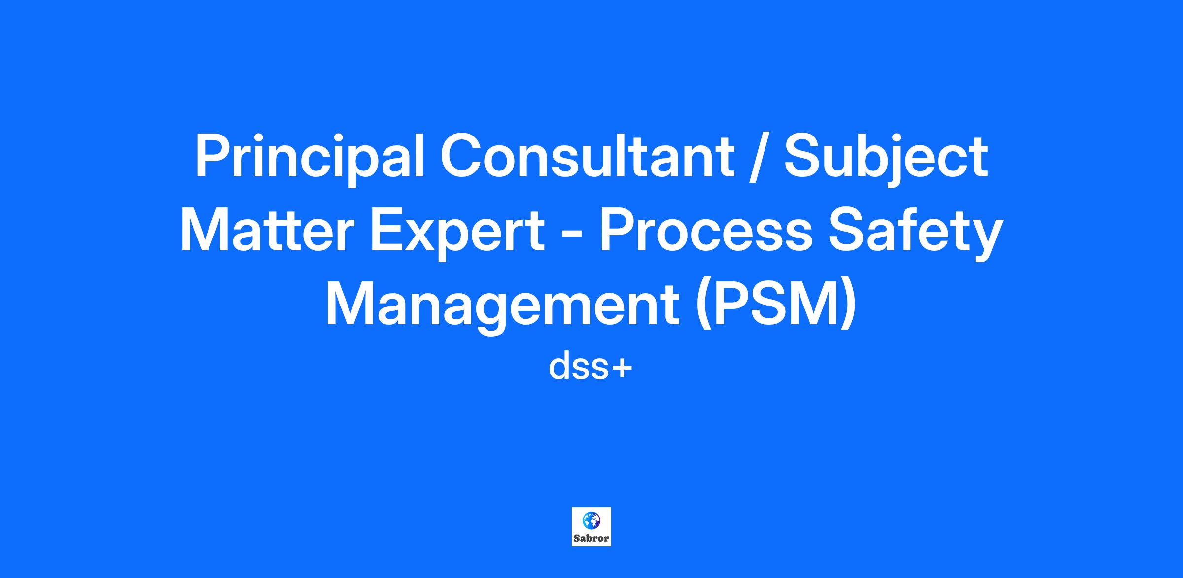 Principal Consultant / Subject Matter Expert - Process Safety Management (PSM)