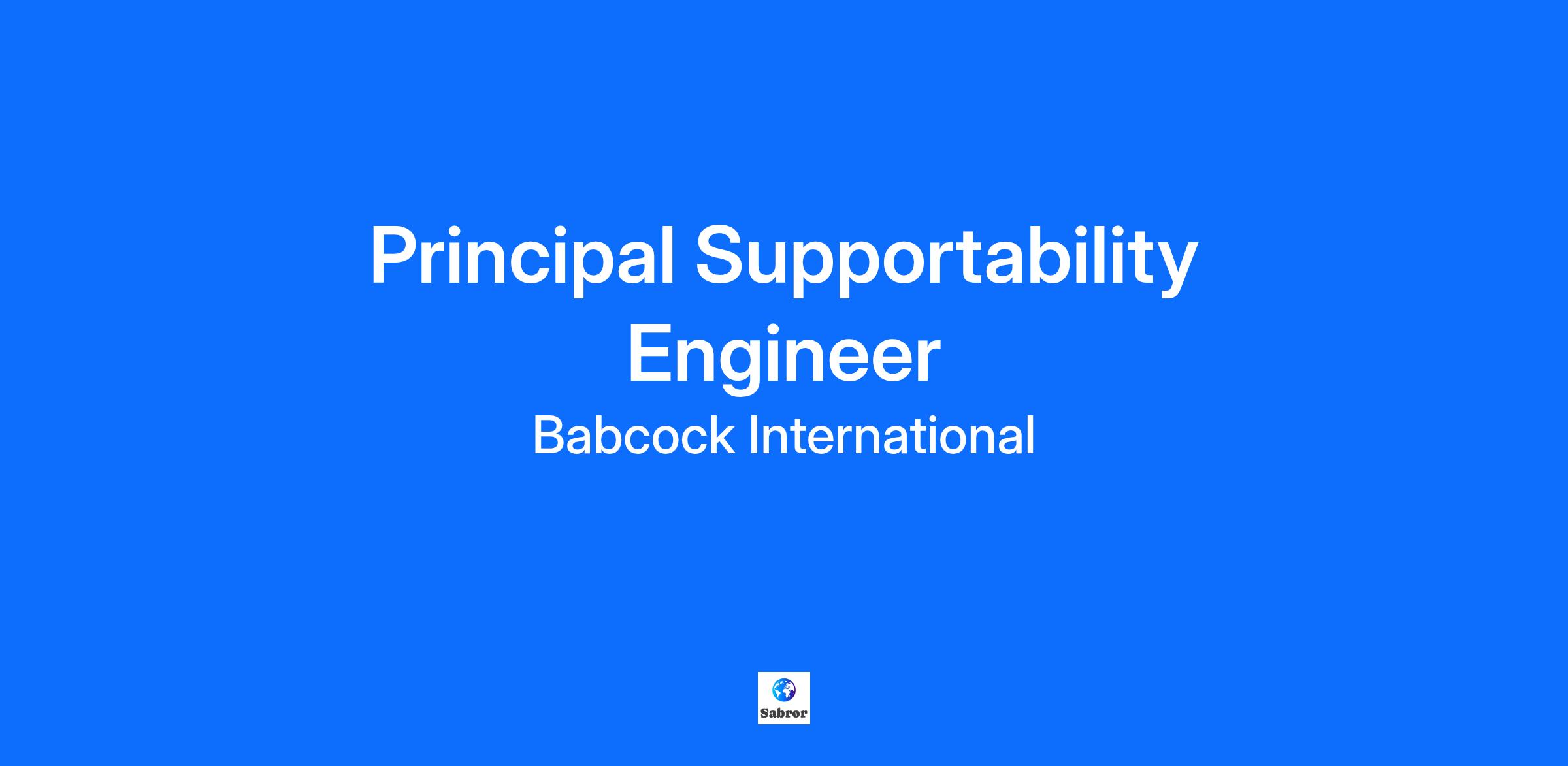 Job Title: Principal Supportability Engineer