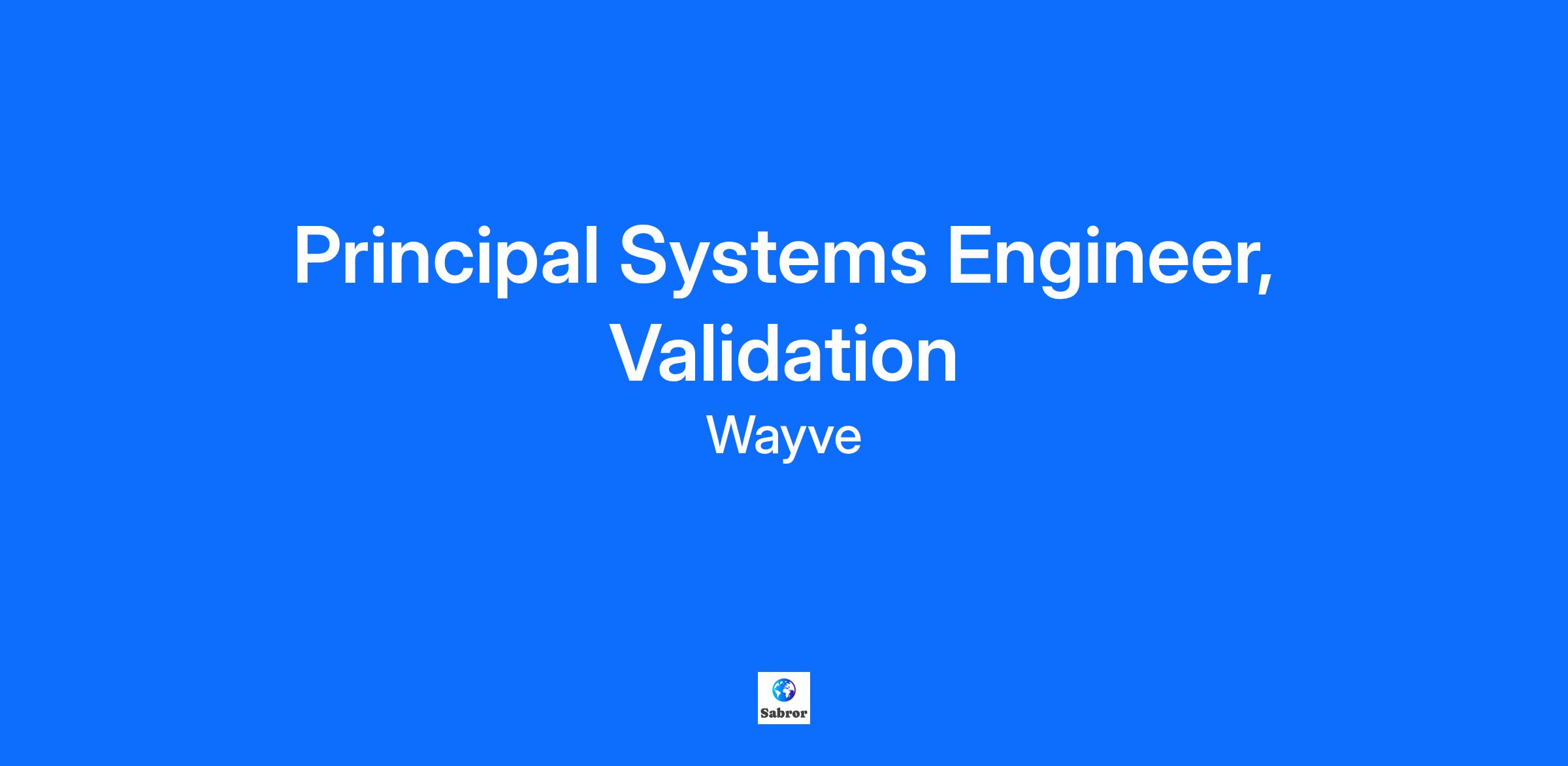 Principal Systems Engineer, Validation