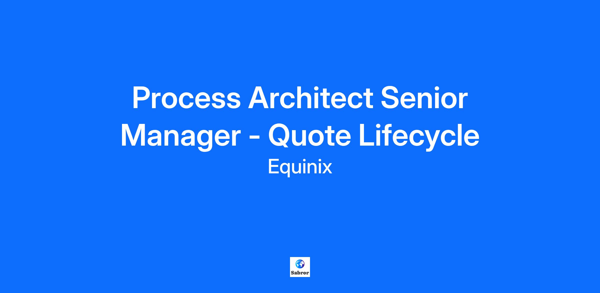 Who are we? Equinix is the world’s digital infrastructure company®, operating over 260 data centers across the globe. Digital leaders harness Equinix's trusted platform to bring together and interconnect foundational infrastructure at software speed. Equinix enables organizations to access all the right places, partners and possibilities to scale with agility, speed the launch of digital services, deliver world-class experiences and multiply their value, while supporting their sustainability goals. A career at Equinix means you will collaborate on work that impacts the world and be surrounded by endless opportunities to learn new skills and grow in varied directions. We embrace diversity in thought and contribution and are committed to providing an equitable work environment that is foundational to our core values as a company and is vital to our success. Job Summary The Senior Manager of Process Architecture will lead process redesign and improvement initiatives of the Quote lifecycle, translating business objectives into optimal process design, in collaboration with our product managers and product owners. This hands-on role requires extensive experience in gathering process information from subject matter experts across business areas and translating it into documented process maps to ensure clear communication and alignment. The ideal candidate will be a customer-focused self-starter with exceptional problem-solving skills, proactivity, resourcefulness, and the ability to develop and implement creative process-centric solutions. They will also have a proven track record of collaborating with cross-functional teams and driving the adoption of new processes to achieve desired outcomes. This role with report into Sales Experience Product Manager. Responsibilities Process Design and Optimization Lead the design and re-engineering of Quote lifecycle to improve operational and scalability, aligning long-term strategies with organizational goals. Utilize structured problem-solving methodologies e.g., Six Sigma, Lean to diagnose challenges, conduct root cause analysis, and develop sustainable solutions Gather and analyze customer feedback through surveys and interviews to identify pain points and preferences, translating insights into process improvements that enhance customer satisfaction and loyalty Create and maintain comprehensive process documentation including process maps and flowcharts, while utilizing advanced modeling techniques to visualize complex processes and their interdependencies Ensure compliance with regulations and industry standards, identifying risks associated with process changes and developing effective risk mitigation strategies Testing Strategy Development Develop and execute comprehensive testing strategies for new processes and technology implementations, ensuring alignment with business requirements. This includes creating detailed test cases and scenarios that cover all functional areas, leading functional, integration, and user acceptance testing (UAT), and analyzing results to provide actionable feedback to stakeholders for necessary adjustments Change Management and facilitation Implement effective change management for new processes and systems Develop and lead training initiatives as needed Identify and address risks that hinder the adoption of new processes Collaborate with senior leadership and stakeholders to define business needs, process requirements, and build consensus on strategic initiatives Facilitate interactive workshops with cross-functional teams to brainstorm, map processes, and identify improvement opportunities, ensuring stakeholder alignment on objectives and outcomes Performance / Risk Metrics and Reporting Establish and monitor key performance indicators (KPIs) to evaluate process performance. Analyze data to provide insights and recommendations for continuous improvement initiatives Technology Strategy and Integration Collaborate with IT and digital transformation teams to identify and implement innovative technology solutions that enhance process efficiency. Ensure technology investments align with business objectives and deliver measurable value Contribute to a culture of continuous improvement Provide guidance and mentorship to junior process architects and business analysts. Foster a culture of continuous improvement and knowledge sharing within the team Qualifications 8+ years leading cross-functional end-to-end process redesign, transformation, and improvement initiatives Bachelor’s degree in a related field Continuous Improvement Certification - Lean Six Sigma or Lean Practitioner preferable Demonstrated ability to translate process improvement opportunities into simple, practical actions Success at leading cross-functional workshops and alignment events Demonstrated success influencing senior leadership decision making, facilitating problem solving, and mediating conflict Demonstrated ability to take ownership of work, work autonomously with minimal oversight, and be proactive with communications and task prioritization Strong Quote Lifecycle business process expertise and analytical skills, with the ability to use data to drive insights and action Able to collaborate and influence cross functionally The United States targeted pay range for this position in the following location is / locations are: San Francisco, CA / Bay Area: $157,000 to $235,000 per year California (Non-SF/Bay Area), Connecticut, Maryland, New York, New Jersey, Washington state: $150,000 to $224,000 per year Colorado, Nevada, Rhode Island: $136,000 to $204,000 per year Our pay ranges reflect the minimum and maximum target for new hire pay for the full-time position determined by role, level, and location. Individual pay is based on additional factors including job-related skills, experience, and relevant education and/or training. This position may be offered in other locations. Your recruiter can share more about the specific pay range for your prefer