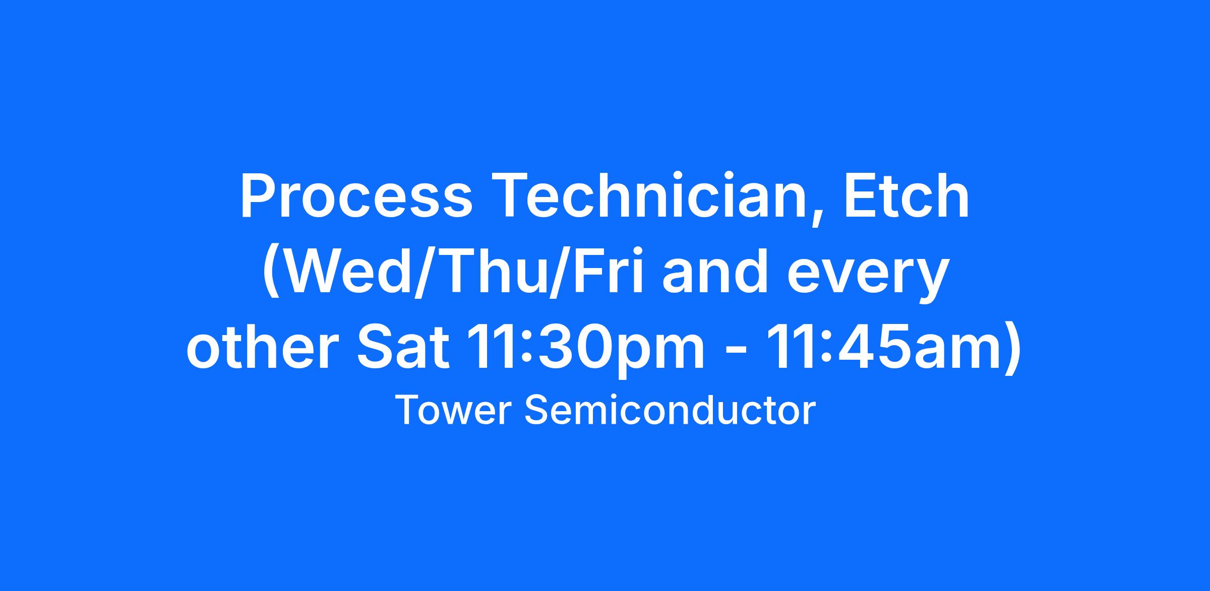Looking for a career path in the high tech manufacturing industry? Become part of a team focused on delivering the most exciting semiconductor technology to the world! If you enjoy working with others in a fast pace environment and are looking for an opportunity to grow your career in the high tech industry then Tower Semiconductor is the place to be!
