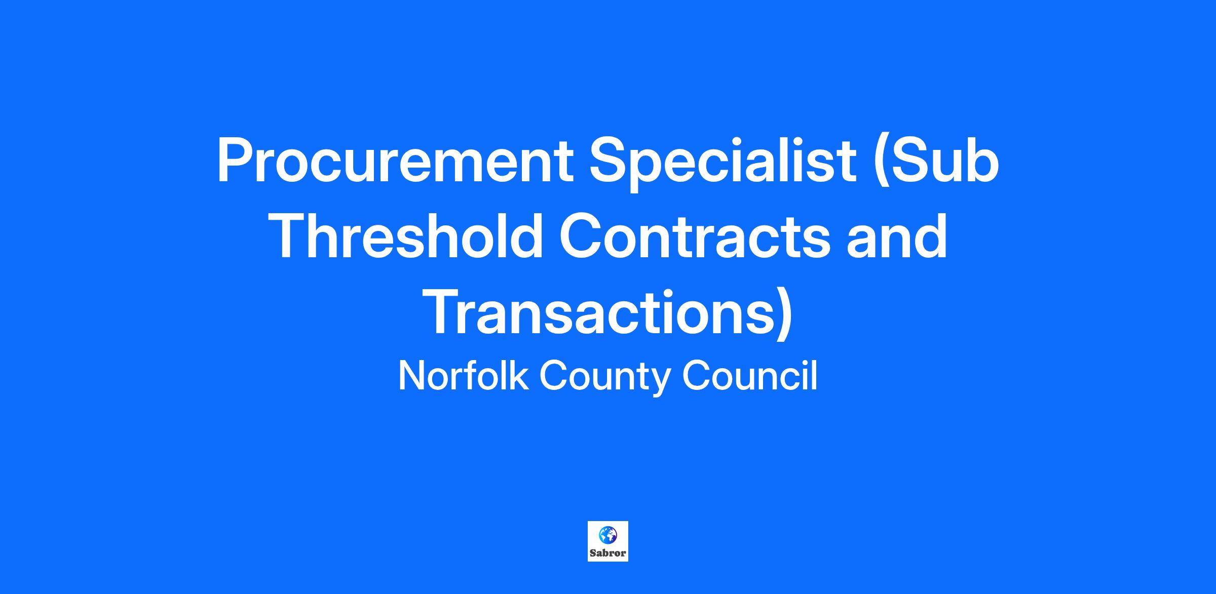 Procurement Specialist – Sub Threshold Contracts and Transactions | 9431 | Permanent Contract | 37 hours per week | £43,822 to £48,227 per annum (Scale K) | County Hall, Norwich About the Role We are seeking an experienced and influential Procurement Specialist to lead best practice in sub-threshold procurement and contract management. This is a key leadership role within our central Procurement Team, managing a small team and working closely with departments across the Council to ensure compliance with procurement law and our Contract Standing Orders. You will develop and improve protocols and templates for competitive quotation exercises, provide bespoke support for medium-value contracts, and oversee the team responsible for managing purchase orders in Oracle. This is an opportunity to shape procurement practice and deliver real value across a £1.1bn spend portfolio. Key Responsibilities Champion procurement best practice and compliance across the organisation. Develop and maintain templates and protocols for sub-threshold procurement activity. Provide bespoke support for complex or medium-value contracts. Monitor contract award and management in departments to ensure compliance. Lead the Procurement Service Desk and maintain intranet resources. Develop and deliver training on procurement processes and systems. Manage and support a team of Procurement Officers and a Procurement Systems Officer. Identify opportunities for continuous improvement and implement solutions. About You You will have strong influencing skills, excellent communication abilities, and proven experience in procurement within a large organisation. You’ll be confident leading a team and driving compliance and improvement initiatives. These are some benefits you can enjoy by working for Norfolk County Council: Competitive salary Generous holiday entitlement Health and Wellbeing services including fast-track physiotherapy and a free counselling service Flexible working opportunities including flexi-time, part time, remote and hybrid working – dependent on your job role and business need. Financial benefits such as: ‘Norfolk Rewards’ our employee discounts programme which helps you save money on almost anything, from everyday groceries and clothes, to holidays, new technology, gym membership, trips to the cinema and days out. A Blue Light card for Fire Service and Social Care Workers Relocation expenses (where applicable) An advance of your expenses if you travel for work Local Government Pension Scheme with generous employer contribution, life assurance, death in service payments and dependants’ pensions Tax efficient ways of getting extra pension and new bikes Access to our tax efficient car lease scheme for greener travel enabling you to lease a brand new, ultra-low emission vehicle (subject to eligibility) A payment if you refer someone you know to a hard to fill job We want our people to be inspired and motivated to work well together, make the most of our workspaces, enjoy a healthy work-life balance, and deliver excellent services to Norfolk and its people. Flexibility is built into the way we work, with hybrid working a key feature for many roles. Our technology platform and equipment are first class, enabling you to connect and collaborate remotely. We ask that you have in place good Broadband connectivity. Before you apply, we recommend reading the full Job description and person specification to help you demonstrate how you meet the criteria. You can also find information on our Terms and Conditions here. Already a Norfolk County Council employee? See and apply for all internal and external vacancies via myOracle using your @norfolk.gov.uk or @nccal.ac.uk email. We would like to make you aware that priority consideration for this post may be given to current employees who are at risk due to restructure within the organisation or are in a redeployment position. Redeployment closing date: 15 December 2025 23:59 All other applicants closing date: 22 December 2025 23:59