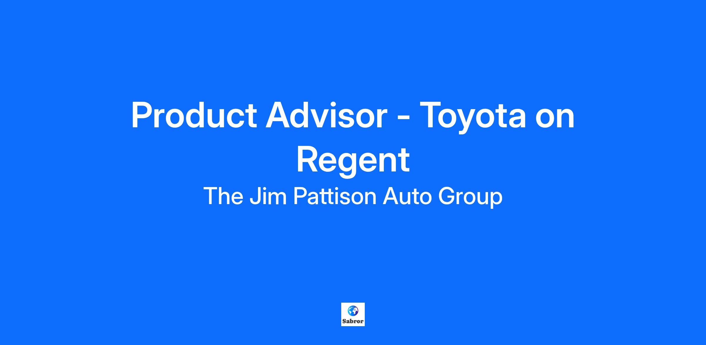 Come join the award-winning team at Jim Pattison Toyota on Regent as a Product Advisor! If you are a driven, tech-savvy, and personable individual who strives to achieve excellence in customer satisfaction and relationship building, this opportunity is for you! Why join us… Competitive commission and bonus plans. We have premium products with highly effective prices at our high-volume location. We have unlimited opportunities for growth and development. State-of-the-art amenities. Flexible schedules. Manufacturer and in-house training are provided. Exclusive access to vendor promotions, offers and purchase programs. Recognition and rewards program. Comprehensive benefits package. Amazing colleagues, great working environment, and a team building culture! A day in the life… Endorsement of the finest personal service to our customers. Advise and guide guests through our vehicle inventory based on their needs. Keeping abreast of competitor products and the overall automotive market in Canada. What we look for… We require a valid provincial driver’s license. Sales Permit is required for vehicle sales. A positive can-do attitude! More about us… https://www.jpautogroup.com/dealership/about.htm https://www.jimpattison.com/about/our-story/ We would like to thank all applicants for their interest in this exciting opportunity. Only those selected for an interview will be contacted directly.