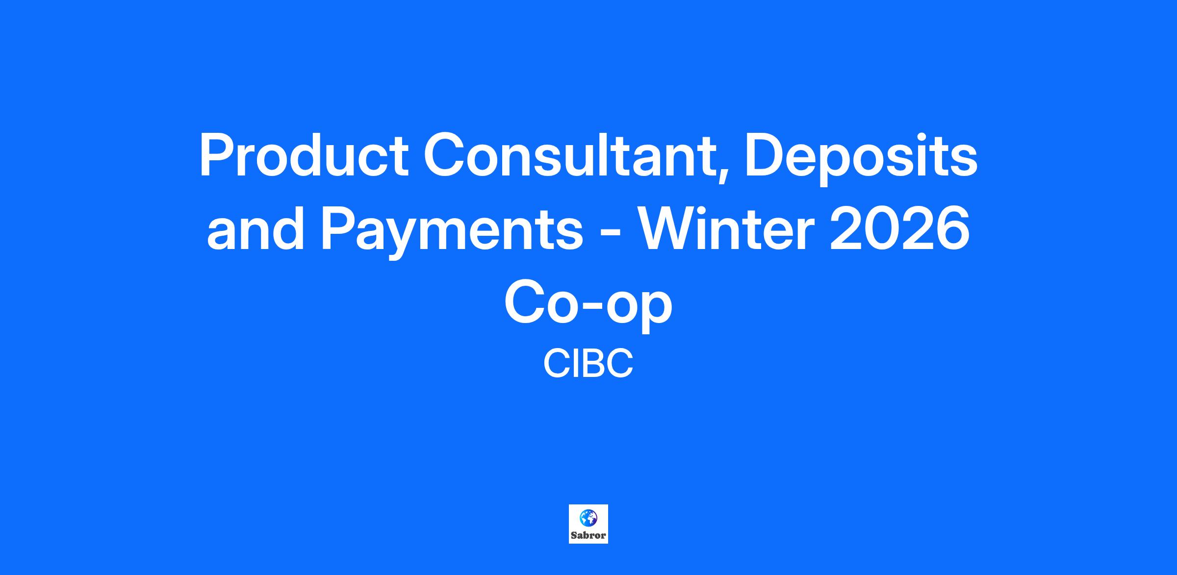 Product Consultant, Deposits and Payments - Winter 2026 Co-op