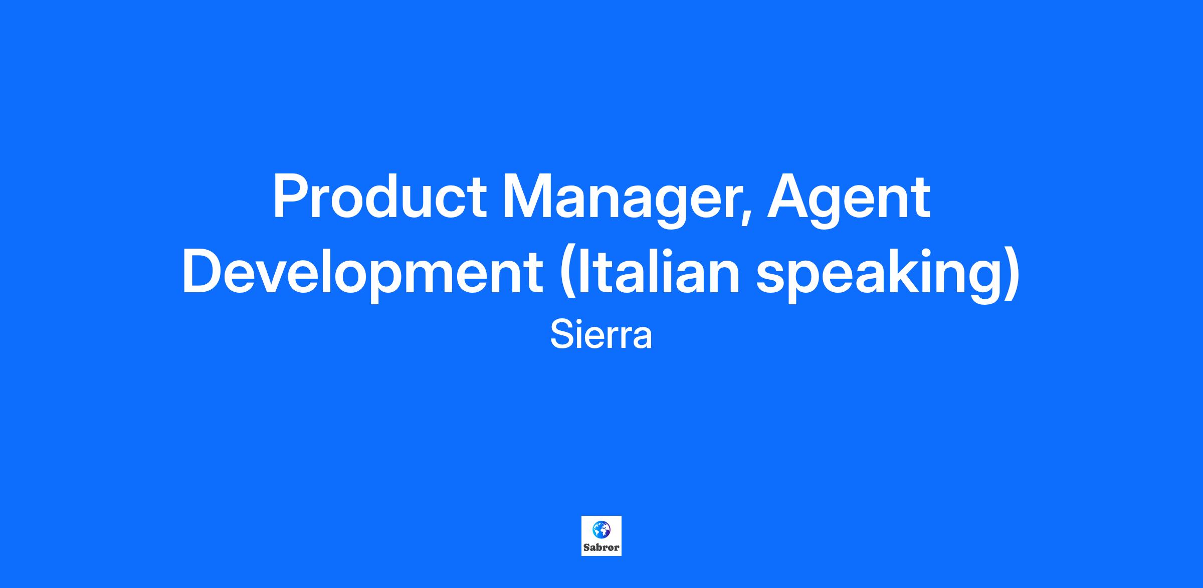 Product Manager, Agent Development (Italian speaking)