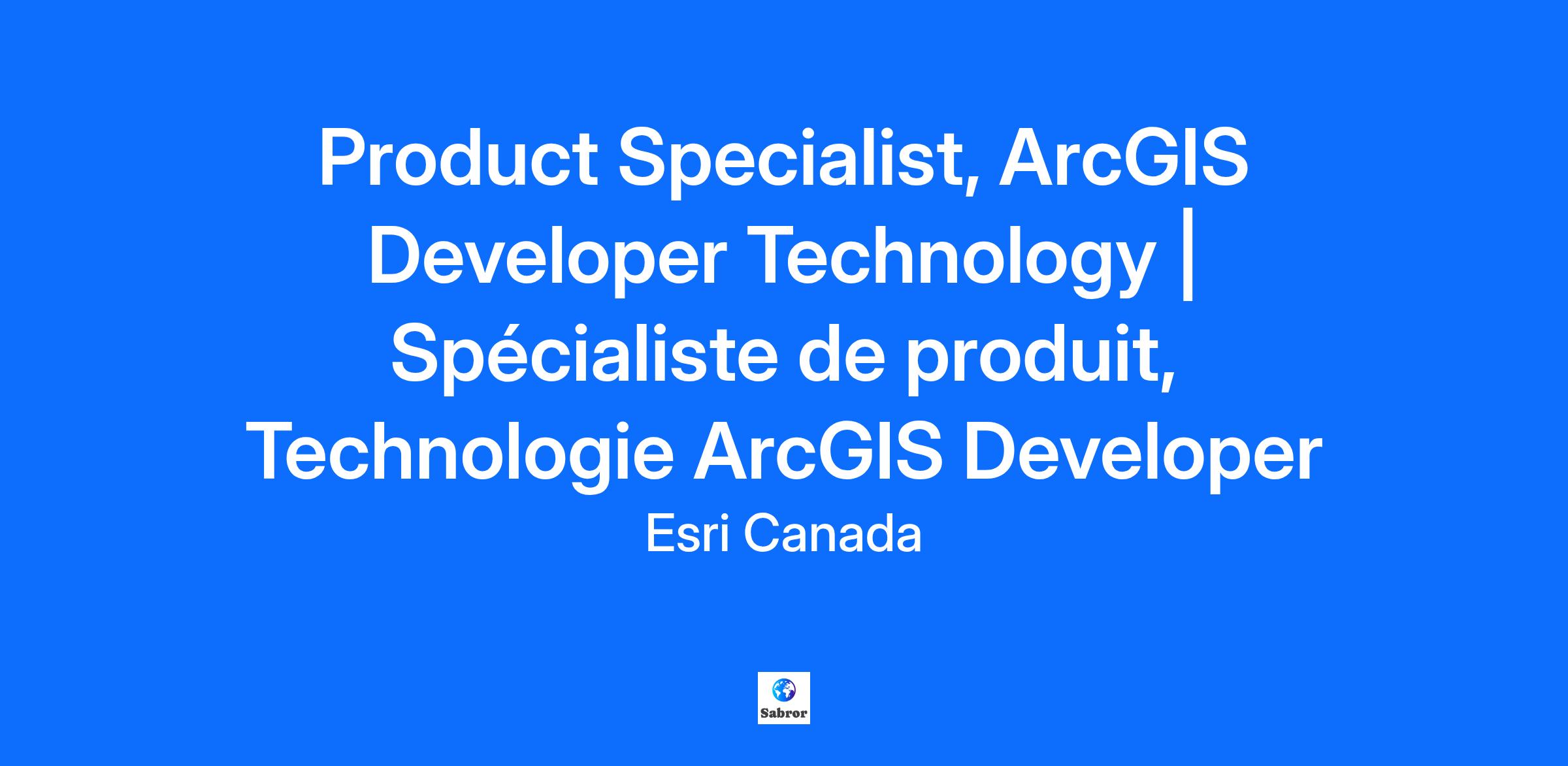 Esri Canada has a unique opportunity for a Product Specialist, ArcGIS Developer Technology on our Product Management team, based anywhere in Canada.