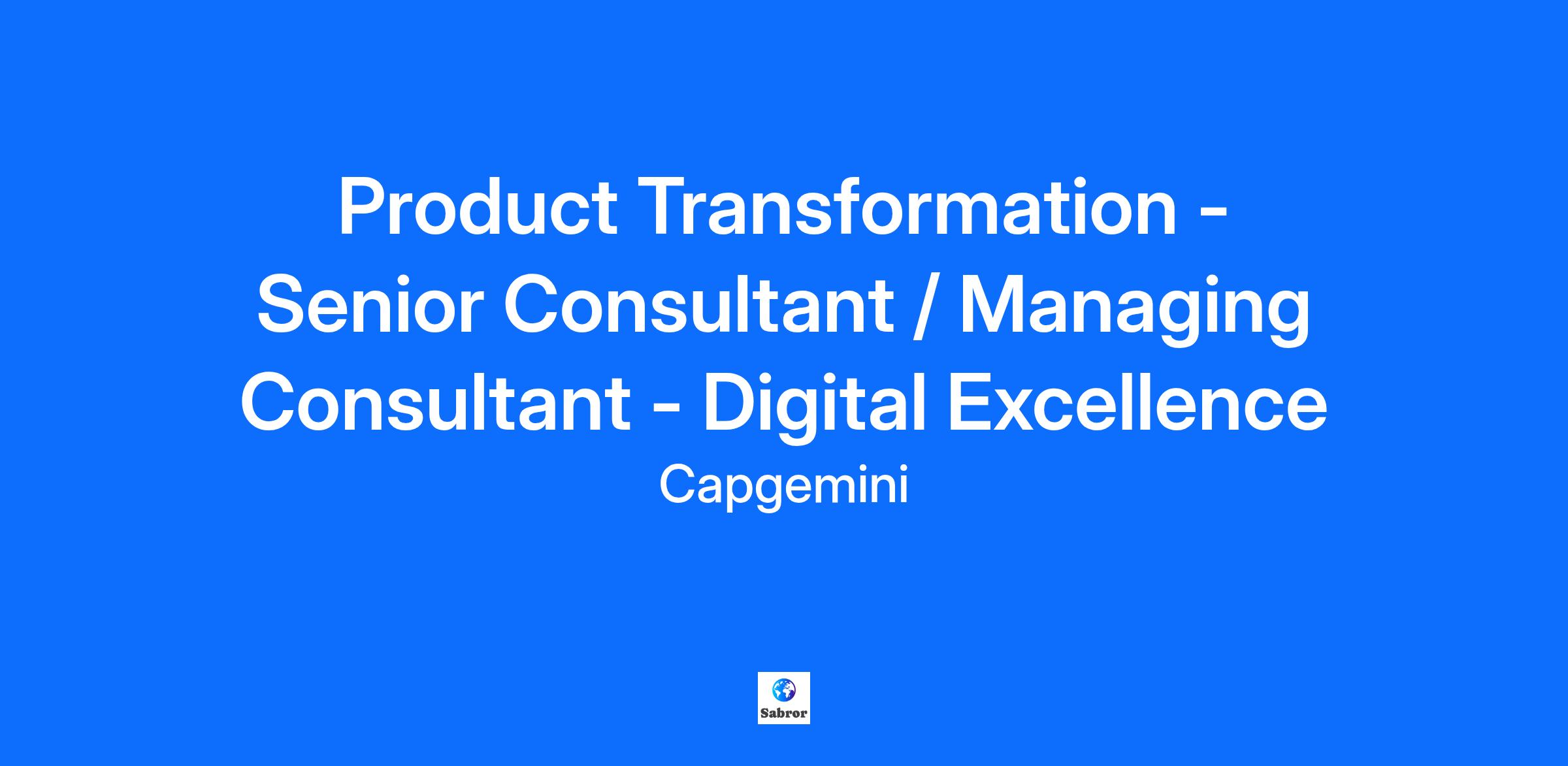 At Capgemini Invent, we believe difference drives change. As inventive transformation consultants, we blend our strategic, creative and scientific capabilities, collaborating closely with clients to deliver cutting-edge solutions. Join us to drive transformation tailored to our client's challenges of today and tomorrow. Informed and validated by science and data. Superpowered by creativity and design. All underpinned by technology created with purpose.YOUR ROLE We are looking for a management consultant who specialises in product-centric transformation and product coaching. This dynamic role requires product management expertise and a consultancy mindset. You will be required to balance business knowledge and stakeholder management with an understanding of product transformation.As part of the role, you will: • Engage with clients to define and shape their transformation strategies • Design and implement product operating models• Design and manage change management activities to support implementation• Mentor and coach other product managers We are in the Digital Excellence tribe, part of Capgemini Invent's Business Technology unit. Our team is a growing and dynamic community of digital professionals. We're passionate about user-centred design, critical thinking, and innovative digital services and products.WHAT YOU"LL DO: Product-centric transformation • Partner with senior client stakeholders to define and shape product transformation strategies.• Support the end-to-end transformation.• Assess current-state capabilities and design future-state product operating models.• Lead discovery and framing sessions to align transformation goals with business outcomes.• Champion the adoption of Agile and product-centric delivery models and standards of re-use.• Align with business goals to improve processes, user experience, and scale efficiencies.Product Operating Model Design • Define and implement product-centric structures, roles, and governance models.• Introduce and embed agile, lean, and DevOps practices tailored to client contexts.• Support the shift from project to product funding and delivery models.Change Leadership • Act as a change agent to influence mindset shifts across business and technology teams.• Design and deliver enablement programs to upskill client teams in product management and agile delivery.• Coach product managers, product owners, and cross-functional teams.Delivery Oversight • Oversee the delivery of transformation roadmaps, ensuring measurable progress and value realisation.• Collaborate with cross-functional teams to pilot and scale new ways of working.• Track KPIs and OKRs to monitor transformation success.• Community and practice development.• Actively contribute to Capgemini Invent’s product community of practice.• Share knowledge and promote a culture of continuous improvement.• Engage in business development activities.• Help shape the future of our practice and contribute to the wider growth of Capgemini Invent.Future trends and innovation • Support design and delivery approaches to the transformation and optimization of product management • Guide clients in leveraging AI and automation to enhance product functionality, streamline development processes, and drive data-driven decision-making.• Embrace emerging technologies such as machine learning, blockchain, and IoT to further innovate product solutions.• Support delivery of user experiences that reflect Capgemini Invent's commitment to user-centric design. As part of your role you will also have the opportunity to contribute to the business and your own personal growth, through activities that form part of the following categories: Business Development – Leading/contributing to proposals, RFPs, bids, proposition development, client pitch contribution, client hosting at events. Internal contribution – Campaign development, internal think-tanks, whitepapers, practice development (operations, recruitment, team events & activities), offering development. Learning & development – Training to support your career development and the skills demand within the company, certifications etc. YOUR PROFILE We’d love to meet someone with: • Proven experience leading product-centric transformations across public and private sector organisations.• Deep understanding of agile, lean, and product management principles.• Strong consulting, facilitation, and stakeholder management skills.• Experience designing and implementing product operating models.• Ability to influence and coach at all levels.• Hands-on experience in implementing Agile and DevOps methodologies in legacy environments.• Familiarity with addressing complex challenges and business needs through tailored approaches.• Excellent communication and stakeholder management skills, and a track record of building lasting relationships.• Experience coaching and mentoring product owners, implementing product ways of working and operating models.• Leadership experience and practical knowledge of project management and financial forecasting.• Familiarity with collaboration tools like Jira, Azure DevOps, Miro and Confluence.Ideally you will also have: • Experience with clients undergoing organisational redesign alongside technology transformations.• Knowledge of industry trends and their impact on business strategies• Relevant Agile (e.g. Scrum Alliance), IT service management and/or project management certifications.• Experience in a people or line management role.WHAT YOU'LL LOVE ABOUT WORKING HERE? We are delighted to have received the “Glassdoor Best Places to work UK’ accolade for 4 consecutive years. To see what it’s like to work at Capgemini Invent, visit our Glassdoor page. Capgemini Invent offers Consultants a culture of learning, ownership, and focus on value. You’ll gain exposure to high-profile transformations and gain hands-on exposure to leading technologies. 