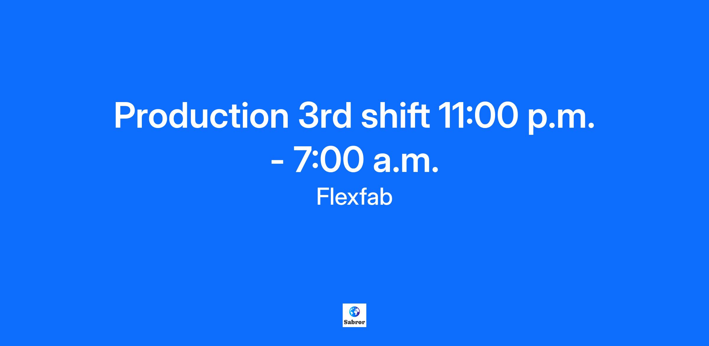 Production 3rd shift 11:00 p.m. - 7:00 a.m.