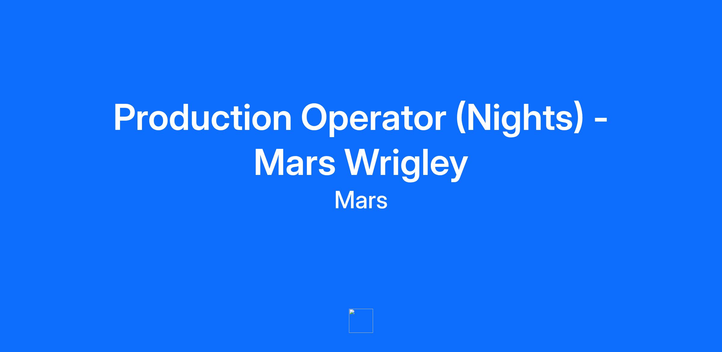 Job Description: Production Operator (Nights) – Mars Wrigley 📍 Plymouth 💷 £39,400.00 (Including shift allowance, DOE) 🎁 Company Performance Bonus + Excellent Benefits 🕒 Shifts: Mon–Fri Nights 10pm- 6am 🌟 Why Join Mars Wrigley? At Mars, our people are our greatest asset. We don’t just offer jobs – we build careers. As part of our Plymouth factory team, you’ll play a hands-on role in creating some of the world’s most loved confectionery brands, while enjoying fantastic benefits and opportunities to grow. This is your chance to be part of a global business with family values, where teamwork, development, and wellbeing come first. 🎁 What’s in it for you? Competitive salary £39,400.00 (Including shift allowance, DOE) Performance-related company bonus On-site perks: Hot food restaurant, gym, parking, employee shop with allowance Healthcare & wellbeing: Private medical insurance, free flu jabs, on-site nurse/osteopath/podiatrist Access to Mars University and career progression opportunities ✅ What We’re Looking For Manufacturing experience – essential for success in this role Communication skills – fluent English, both written & spoken Tech proficiency – comfortable with Microsoft Outlook & Excel Safety & quality mindset – a strong eye for detail and standards Team player – collaborative, proactive, and supportive of colleagues 🔧 Your Key Responsibilities Start up, shut down, clean, and monitor equipment Perform basic changeovers, minor repairs, checks, and inspections Use ancillary equipment and computer systems to keep things running smoothly Collaborate with a shift team of up to 15 associates to hit production targets Take accountability for multiple machines and processes Escalate issues quickly and provide clear handovers Use your knowledge to carry out mechanical repairs when needed 🌍 Why Mars? Work with over 130,000 Associates across the globe Be part of a purpose-driven business guided by The Five Principles Access to world-class learning & development from day one Play a part in producing iconic brands like Galaxy®, Maltesers®, Extra®, Skittles® and more Mars is a family-owned business with more than $35 billion in global sales. We produce some of the world’s best-loved brands: M&M’s®, SNICKERS®, TWIX®, MILKY WAY®, DOVE®, PEDIGREE®, ROYAL CANIN®, WHISKAS®, EXTRA®, ORBIT®, 5™, SKITTLES®, BEN’S ORIGINAL®, and COCOAVIA®. Alongside our consumer brands, we proudly take care of half of the world’s pets through our nutrition, health and services businesses such as Banfield Pet Hospitals™, BluePearl®, Linnaeus, AniCura, VCA™ and Pet Partners™. Headquartered in McLean, VA, Mars operates in more than 80 countries. The Mars Five Principles – Quality, Responsibility, Mutuality, Efficiency and Freedom – inspire our 140,000 Associates into taking action every day towards creating the world we want tomorrow.