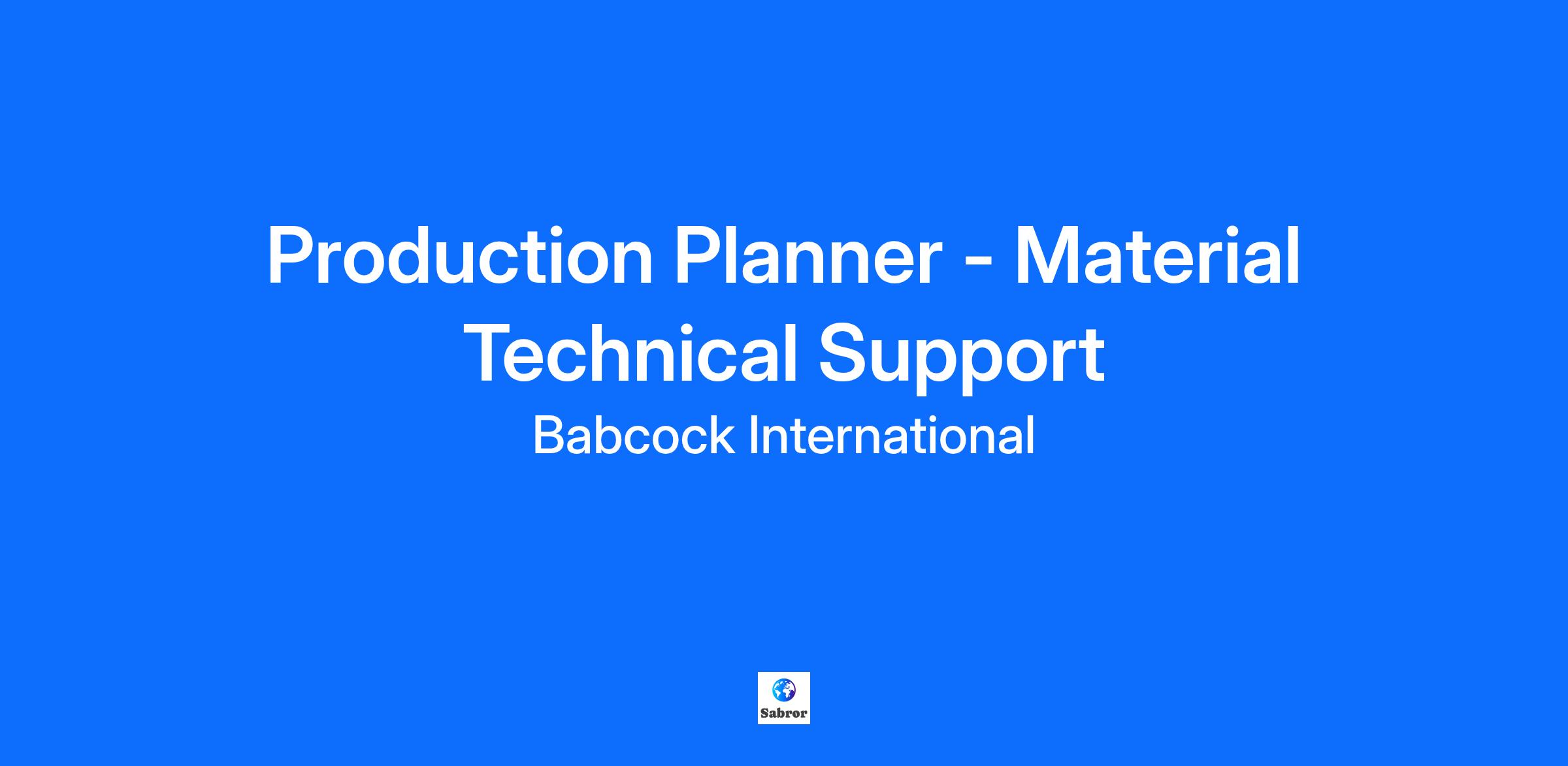 Job Title: Production Planner - Material Technical Support