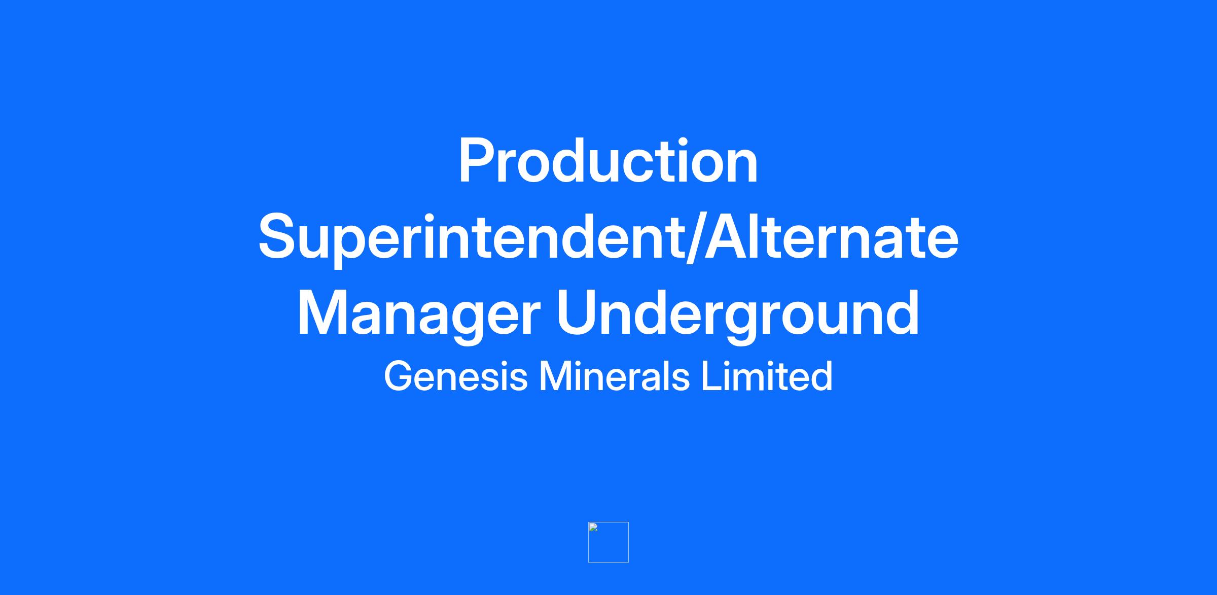 Do you ASPIRE to join a new growth story in West Australian gold? Join us! Accountable. Sustainable. People First. Integrity. Results. Empower. Job Title Production Superintendent/Alternate Manager Underground Job Roster Inclusive Leadership Team Competitive remuneration, including site allowance and bonuses Lifestyle friendly 8/6 roster, FIFO from Perth direct to Leonora Job Summary Oversee underground mine operations and production for medium to small size organisation's and ensure efficient and safe operations that comply with budget Job Statement Join the Genesis of a new growth story in West Australian Gold We have an excellent career opportunity for an enthusiastic Productions Superintendent / Alternate Underground Manager to join the Underground Leadership team at our Leonora Operations in Western Australia. Reporting to the Underground Manager and working back to back with the Technical Services Superintendent, you will fill the statutory Alternate Underground Manager role on a regular basis, supporting the leadership of the underground operations team to safely and effectively mine the resource. Additionally, you will provide technical and operational development to the underground mine engineering team in support of growing team capability and in order to achieve our long term operational objectives. This is a full time permanent opportunity, working predominantly an 8 days on, 6 days off roster. The role may be Fly-in Fly-out from Perth WA or Drive-in Drive-out from Kalgoorlie. The opportunity Direct the underground operations’ mining team and related contractors to execute works in line with contractual obligations to reach our agreed business plans. Manage and direct the underground operations team to produce the plans and designs in line with the monthly schedule to deliver to plan and, with the Mining Contractor(s), align with the delivery of tonnes and ounces against budget. Manage the business improvement governance for the operations to achieve site targets as set out in the strategy and business plan. Develop and deliver our business improvement initiatives in line with the Leonora Business Improvement Program. Build and maintain key relationships with the Mining Contractor to evaluate their performance, track trends to ensure actions are taken to correct variances and deliver results in a cost effective manner. Ensure control and delivery of capital expenditure and project scope. Enable and support a safety focused culture; and Deliver on strategy, budget costs, mine development, key infrastructure and production. We would love to hear from you if you have: First Class WA Mine Managers Certificate. A degree qualification in mining engineering. Significant demonstrated relevant experience in mining, with appropriate experience in underground mining. Thorough understanding of statutory reporting requirements and the WA Mining regulations. Strong leadership skills including developing direct reports. Financial analytical skills and commercial acumen. High energy with strong interpersonal and communication skills Does this sound like you? If so, we’d love to hear from you. What you can expect from us A caring and supportive culture. Professional and positive team environments on site, and at all facilities. Access to professional development activities and educational assistance. Competitive salary. Excellent camp accommodation facilities with the unique benefit of access to Leonora Township facilities. Genesis Minerals is a new and growing ASX-listed gold house, 100% focused in the Leonora District of Western Australia. We have the assets and people in place to achieve our vision who value honesty and integrity, doing every job safely and working collaboratively as part of a team. We look forward to you joining us. Genesis Minerals is a growing organisation where you can expect to be part of an inclusive and rewarding work environment where your contribution is acknowledged and recognised. Please introduce yourself to our recruiters and we'll get in touch if there's a role that seems like a good match.