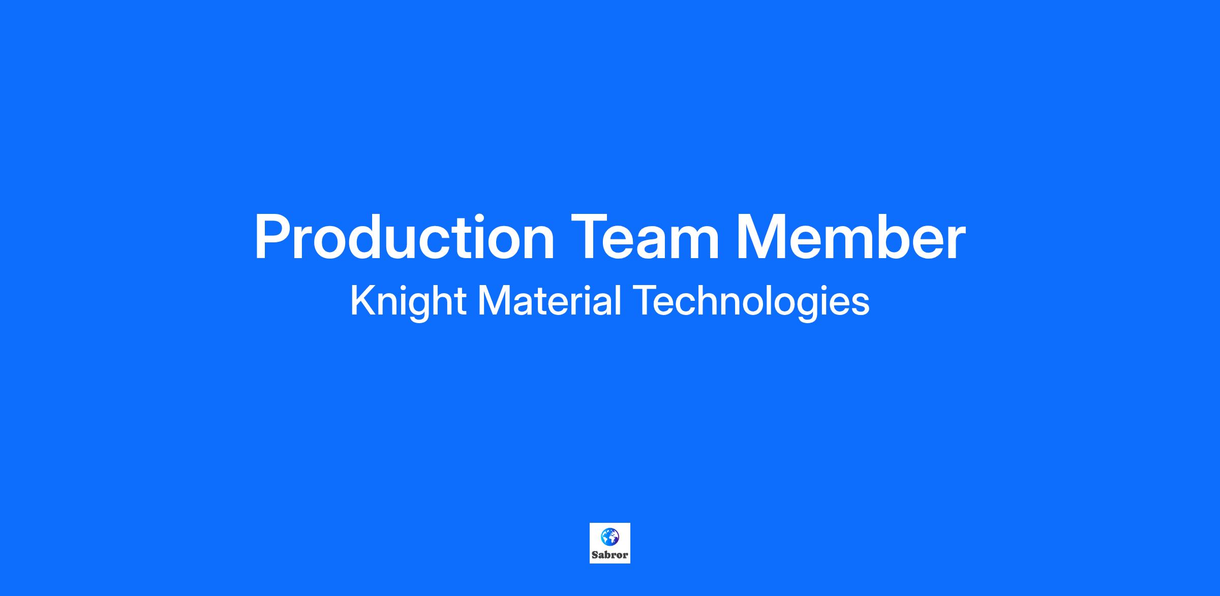 Knight Material Technologies is looking for full time, Production Team Members at their East Canton, OH location. The Production Team Member is responsible for the completion of customer product requirements on time and with the highest quality within an assigned area while maintaining an environment that focuses on the Knight Material Technologies How We Work Principles of Safety and Compliance, Customer Focus, Respect, Integrity, Problem Solvers, and Teamwork. All shifts available.