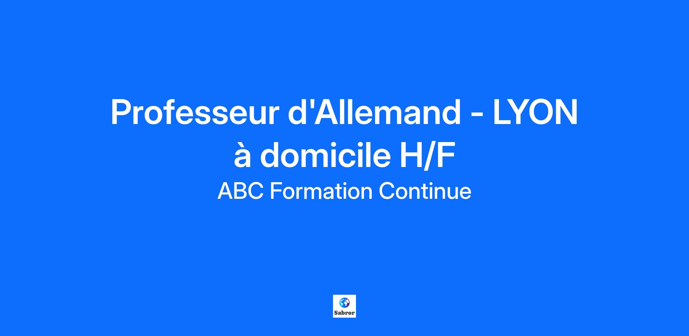 ABC Cours Particuliers est une entreprise de cours à domicile, présente sur le territoire national. Nous intervenons auprès d’élèves de tous niveaux, du primaire à l'enseignement supérieur. Dans le cadre du développement de notre agence, nous recherchons un professeur de d’Allemand pour des cours particuliers à domicile niveau Adulte. Vous avez un niveau solide en allemand. Vous avez envie de transmettre vos connaissances. Vous êtes disponible sur l'un des créneaux suivants : * 2 fois 2h par semaine a partir de 18h Vous êtes étudiant ? Nous ne recrutons qu'au niveau Bac+3 acquis ou en cours Type d'emploi : Mission de 22 heures Lieu du poste : En présentiel à 69007 LYON Rétribution nette horaire incluant les frais de déplacement : 23.00€