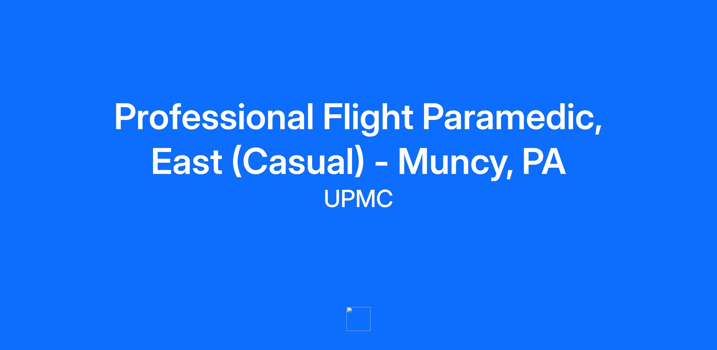 The UPMC Center for Emergency Medicine is looking to hire a Casual Professional Flight Paramedic, East to support MedEvac 19, located in Muncy, PA. Schedule: 48 hours in an 8-week schedule Purpose: The Professional Flight Paramedic functions as a member of the critical care transport team and is responsible for the care of critically ill or injured patients transported by the STAT MedEvac system. Responsibilities include patient care incorporating assessment, stabilization, and intervention techniques consistent with standards and protocols approved by the Medical Director. The Professional Flight Paramedic is expected to execute independent judgment in order to deliver appropriate care that is consistent with the clinical protocols, when contact with a medical command physician is not possible. The Professional Flight Paramedic functions as a part of a team and shares responsibility for the team's conduct. The Professional Flight Paramedic fulfills education and experiential requirements as established by the STAT MedEvac Medical Director, and performs other duties as assigned. Supports and upholds the mission, goals, and objectives, of the STAT MedEvac system at all times. Responsibilities: OPERATIONS: Adheres to system standardization, policies and procedures, and other established practices to ensure prompt efficient response, safe operations, and quality patient care. Meets all deadlines for certifications, clinical competencies, or educational requirements. Ensures safe operation of patient laden stretcher employing appropriate stretcher discipline at all times with a patient laden aircraft or ground unit. Maintains safe loading, unloading, adjustment of head of stretcher, and stretcher movement. SAFETY: Ensures the safety of patients and all others functioning in and around the aircraft. Utilizes appropriate safety channels to report safety concerns and uses tools available to enhance a safe work environment. OUTREACH: Reflects a positive attitude to the customer in a high stress environment at all times along. Demonstrates the ability to establish a rapport with customers; including the ability to create and sustain a positive relationship; regardless of circumstances, environment, or patient presentation. CLINICAL: Provide advanced critical care life support to critically ill or injured patients in adherence with established protocols and standards of care; accessing online medical command or other resources when appropriate, and employing the skills, competencies, and judgment necessary to provide patient care in any environment; using resources that are required or made available. Documents appropriate assessment, interventions, and other pertinent patient information in a timely manner. Collects and promptly processes demographic, medical necessity, and other necessary billing information. Participates constructively in the peer-review driven quality improvement program EMPLOYEE HEALTH: Maintains fitness for duty by adhering to all employee health requirements, including maximum weight, hearing conservation program, and required medical screenings. Reports injuries and completes the appropriate documentation, no matter how minor, to a supervisor in a timely manner. High School Diploma or Equivalent. Three years clinical experience in critical care and/or emergency department. Successful completion of a pre-employment physical exam that includes a maximum height/weight restriction of 6-2 and less than or equal to 210 pounds, fitness for duty physical exam, hearing evaluation, and be declared fit for duty by the Medical Director. Must be eligible to receive medical command authorization by the Medical Director, have reliable transportation, and be willing to travel to any STAT MedEvac base site as assigned. Must be able to successfully complete the prescribed orientation program, including classroom, clinical rotations, educational competencies, and on the job flight training. Must have the ability to work productively and effectively within a complex environment, handle multiple/changing priorities, and specialized equipment. Licensure, Certifications, and Clearances: Driver's License. Advanced Cardiac Life Support. Cardiopulmonary Resuscitation. Pediatric Adv Life Support. Neonatal Resuscitation Program (within 90 days of hire). NIMS Incident Command 100 (within 90 days of hire). NIMS Single Resources 200 (within 90 days of hire). NIMS Introduction Couse 700 (within 90 days of hire). NIH Stroke Scale Certification (within 90 days of hire). FP-C (within 2 years of hire). NREMT-PEMT-P (based on home base assignment requirements). Trauma Nursing Core Course OR Intl Trauma Life Support OR Adv Trauma Life Support. OR Prehospital Trauma Life Supp (one required within 90 days of hire). Act 34. Advanced Cardiac Life Support (ACLS) Advanced Trauma Life Support OR International Trauma Life Support OR Prehospital Trauma Life Support OR Trauma Nursing Core Course Basic Life Support (BLS) OR Cardiopulmonary Resuscitation (CPR) Certified Flight Paramedic Driver's License FEMA (Federal Emergency Management Agency) Certification IS-100 OR National Incident Management System Incident Command FEMA (Federal Emergency Management Agency) Certification IS-200 OR National Incident Management System Single Resources FEMA (Federal Emergency Management Agency) Certification IS-700 OR National Incident Management System Introduction Course NIH Stroke Scale (NIH) National Registry Emergency Medical Technician Paramedic (NREMT-P) OR Paramedic Neonatal Resuscitation Program (NRP) Paramedic Pediatric Advanced Life Support (PALS) Act 34 UPMC is an Equal Opportunity Employer/Disability/Veteran