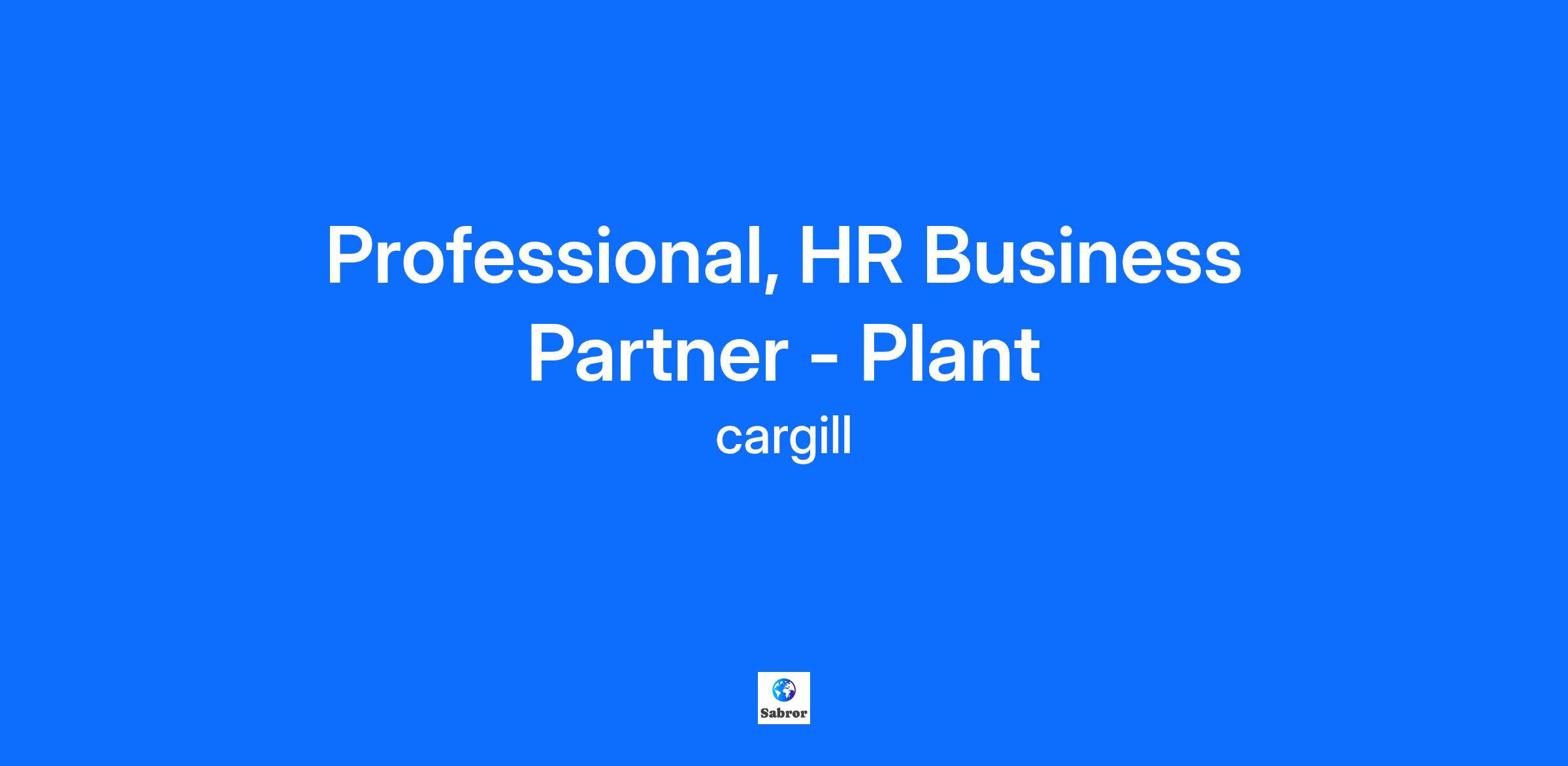 Professional, HR Business Partner - Plant