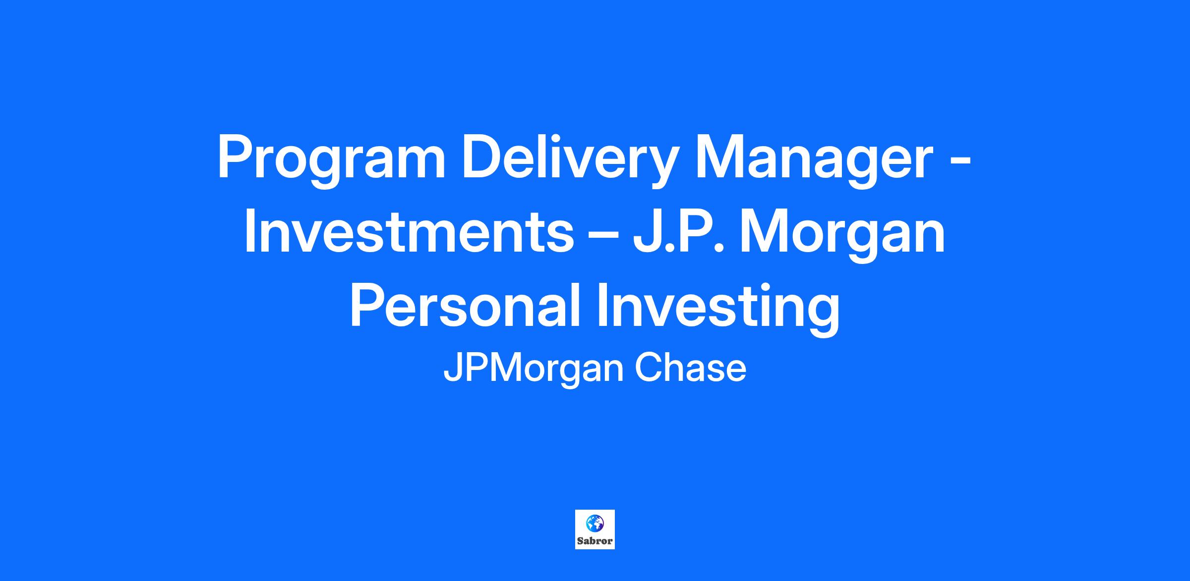 Program Delivery Manager / Investments – J.P. Morgan Personal Investing Behind every investment is a person with ambitions, motivations and values. While we know that every client is unique, they come to J.P. Morgan Personal Investing for the same reason: our straightforward and transparent approach to investing, and the trust that 150 years of J.P. Morgan heritage brings. J.P. Morgan Personal Investing offers award-winning investments, products and digital wealth management services to over 275,000 investors in the UK. We built the business with innovation as a core part of our ethos to give consumers the confidence and clarity to make informed investment decisions and achieve their financial goals. The Role: We are seeking an experienced Program Delivery Manager with proven leadership, strategic planning, transformation, organizational, and communication skills to drive complex and innovative initiatives from inception to launch. As a key member of the Program Delivery Management team, you will be instrumental in delivering J.P. Morgan Personal Investing most significant and strategic projects. Your responsibilities will include overseeing large-scale initiatives such as new product launches, product J.P. Morgan Personal Investing, integrations with our B2B partners, and international expansion. In this role, you will be accountable for developing and maintaining comprehensive project plans, defining and tracking milestones, decisions, risks, and issues, and ensuring robust governance throughout the project lifecycle. You will also manage effective communication among stakeholders, including third parties, to ensure alignment and transparency. We are looking for a hands-on contributor with a strong sense of initiative and a bias for action, who thrives in a dynamic environment and is passionate about delivering impactful results. Responsibilities: Lead and facilitate the delivery of complex projects on J.P. Morgan Personal Investing roadmap, guiding initiatives from initial conception through to successful implementation and launch. Develop, manage, and clearly communicate comprehensive plans that capture key delivery milestones, decisions, risks, and issues. This includes monitoring progress across Product, Engineering, Operations, Customer Experience, and other functional teams, while ensuring all activities comply with Control and Compliance standards. Ensure initiatives are executed within the agreed scope, delivered on schedule, and remain within budget, consistently building a reputation for trustworthiness and reliability. Provide structure, direction, and pragmatic guidance throughout the project lifecycle, helping teams maintain focus on critical priorities and objectives. Foster strong, collaborative relationships across internal functions and with external partners, promoting teamwork and effective communication. Work closely with colleagues to define, refine, and continuously enhance our program delivery processes and protocols. Required competencies: Extensive experience managing diverse and innovative programs in the financial sector, consistently delivering impactful results. Demonstrated ability to lead all stages of the product lifecycle, including discovery, ideation, strategic development, requirements definition, and value management. Experience with software delivery best practices, working with technical product requirements and mapping of dependencies, design of minimum viable products, working with multi-country requirements. Significant hands-on experience working in agile environments, utilizing tools such as JIRA and Confluence. Solid practical understanding of additional delivery methodologies, including Waterfall. Adaptable and professional communicator, skilled at presenting to senior executives and engaging stakeholders at all levels. Open and transparent in managing work and program progress, ensuring diverse stakeholders are kept informed through well-designed governance and regular updates. Pragmatic, delivery-focused mindset with the ability to bring structure, clarity, and a bias for action to complex initiatives. Comfortable operating in fast-paced, ambiguous environments, maintaining composure and focus under pressure. Effective facilitator, adept at managing and resolving conflicts, and able to influence and motivate others without direct authority. Experience in change management, including impact assessment, defining success metrics, stakeholder engagement, and supporting training to ensure program adoption and success. Experience in building wealth management products, with familiarity across the end-to-end lifecycle of brokerage and mutual funds considered a strong advantage.