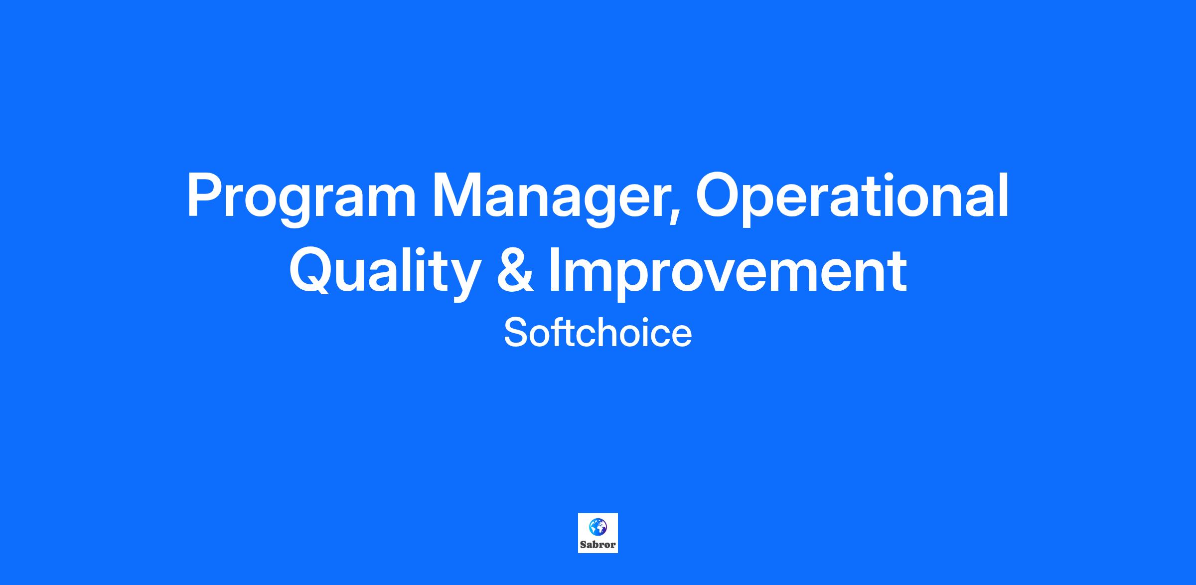 Why you’ll love Softchoice:We are a software-focused IT solutions and services provider that equips organizations to be agile and innovative, and for their people to be engaged, connected, and creative at work. That means moving them to the cloud, helping them build the workplace of tomorrow, and enabling them to make smarter decisions about their technology. By doing these things we help them create success for their customers and their people. We stand proudly for our people and support their success through career development and advancement. We are recognized and respected for our culture of inclusion and belonging, continuously striving to do what’s good for our people and communities. The impact you will have: The Program Manager, Operational Quality & Improvement is a strategic leader responsible for designing and executing a comprehensive strategy to improve the accuracy, consistency, and turnaround of operational outputs across quoting and other key business processes. This role partners closely with cross-functional leaders and key business stakeholders to define performance targets, monitor outcomes, and drive action planning. The ideal candidate brings a strong mix of analytical rigor, stakeholder influence, and operational insight to elevate the quality and consistency of outputs across the organization. Reporting to the Director, Customer Success & Operations Improvement, this role is pivotal in driving cross functional collaboration, establishing performance metrics, and fostering a culture of continuous improvement. By implementing a robust quality framework, this role will directly improve the reliability and accuracy of key cross functional business outputs, and help build scalable processes and governance models that support long-term operational excellence. What you will do: Develop and lead the end-to-end operational quality strategy by partnering with senior leaders across departments to establish quality and turnaround KPIs, and ensure accountability for results Own the reporting of program outcomes, risks, and improvement plans to executive stakeholders, enabling informed decision-making. Define and track quality & turnaround KPIs across quoting and other processes Analyze performance trends and feedback to identify systemic issues and lead targeted improvement initiatives. Facilitate cross-functional collaboration to identify and inform improvement projects Report on program performance, risks, and improvement outcomes Collaborate with the Customer Experience Office to ensure alignment with customer needs and feedback. What you bring to the table: Bachelor’s degree in Business, Operations, Engineering, or a related field. 5+ years of experience in program or project management, with a focus on operational excellence or quality improvement. Proven ability to lead cross-functional initiatives and influence senior stakeholders. Strong analytical skills with experience in KPI development, performance reporting, and root cause analysis. Familiarity with Lean, Six Sigma, or other continuous improvement methodologies. Excellent communication and stakeholder management skills. Pay Range:The typical pay range for this role is $81,260 - $95,600. Note: the pay range represents the full pay range for this position. Each individual offer will take into consideration a range of factors, including prior experience and geographic location. In addition to the base salary, this role is eligible for additional elements of compensation including (cell allowances, annual bonus, or commissions etc.), as well as a comprehensive benefits plan.Not sure if you qualify? Think about applying anyway:We understand that not everyone brings 100% of the skills and experience for the role. At Softchoice, we offer opportunities to a diverse group including those with a variety of workplace experiences and backgrounds. Whether you are new to corporate tech, returning to work after a gap in employment, or looking to transition and take the next step in your career, we are excited to learn more about you and encourage you to apply. Why You’ll Love Working Here: The People: You’ll thrive in our collaborative environment, surrounded by incredible colleagues who foster support and innovation, driving our collective success High-Performing Culture: At Softchoice, we are dedicated to achieving our goals and committed to success for our customers and each other Flexibility: Plan your workdays in a way that suits you best Award-Winning Workplace: Proudly recognized as a Great Place to Work for 20 consecutive years Inclusive Culture: We are committed to an inclusive culture where every team member can be their authentic self Competitive Benefits: Benefit from competitive perks that start on day one Inclusion & Equal opportunity employment:We are an equal opportunity employer committed to diversity, inclusion & belonging. People seeking employment at Softchoice are considered without regard to any protected category including but not limited to, race, color, religion, national origin, age, sex, marital status, ancestry, disability, veteran status, gender identity, or sexual orientation.Require accommodation? We are ready to help:We are proud to provide interview & employment accommodation during the recruitment and hiring process. If you require any accommodation to apply or interview for a position, please reach out directly to asktalentacquisition@softchoice.com. We are committed to working with you to best meet your needs.Our commitment to your experience:We are committed to the safety of all applicants and team members. With that in mind, we have implemented digital interviewing for everyone. We understand that you may need to interview with distractions around you (such as children or furry friends) and we will be doing the same.Before you start with us, we will conduct a criminal record check, verify your education, and check your references.When you join Softchoice, we will onboard you remote