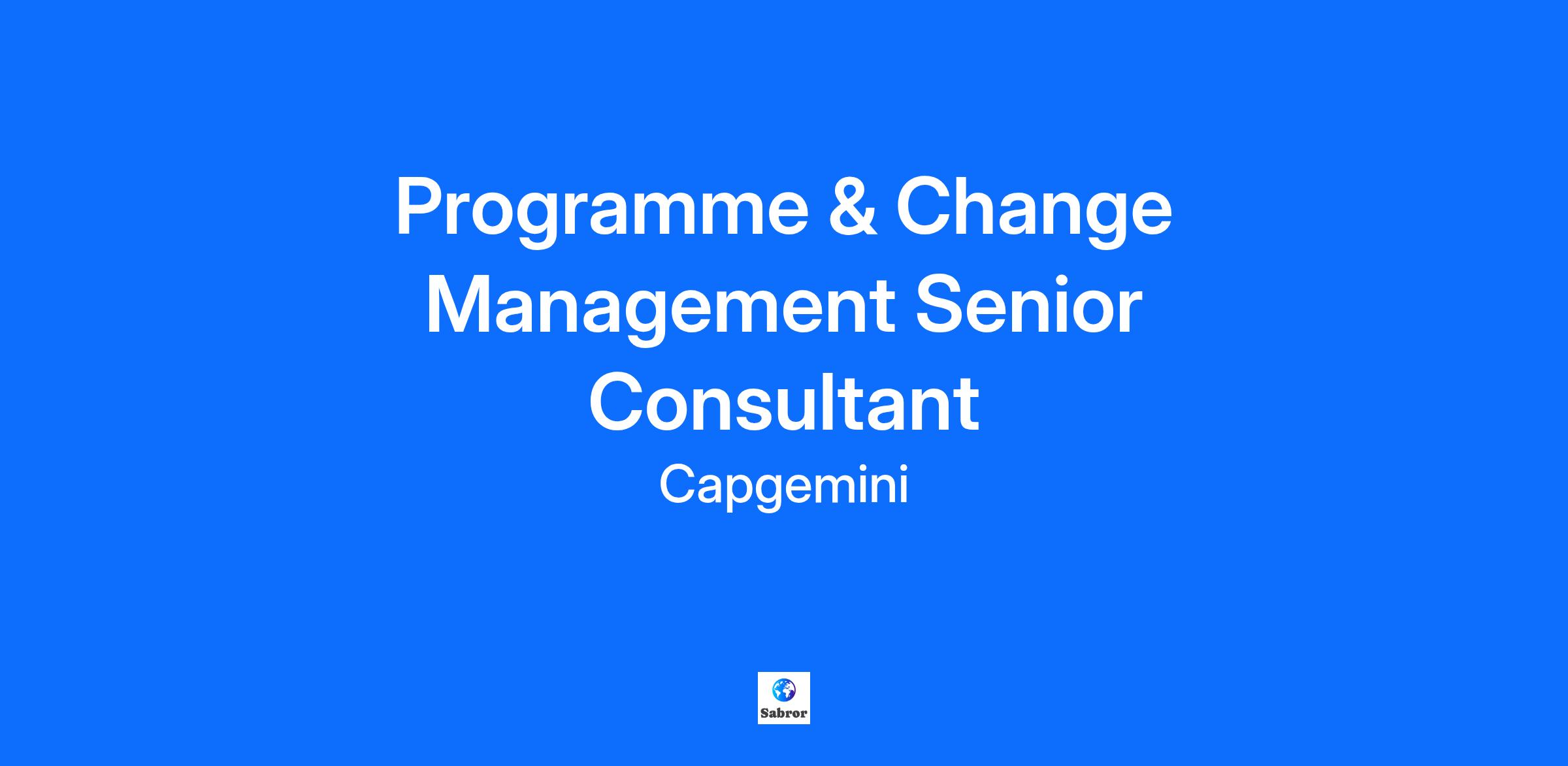 Programme & Change Management Senior Consultant