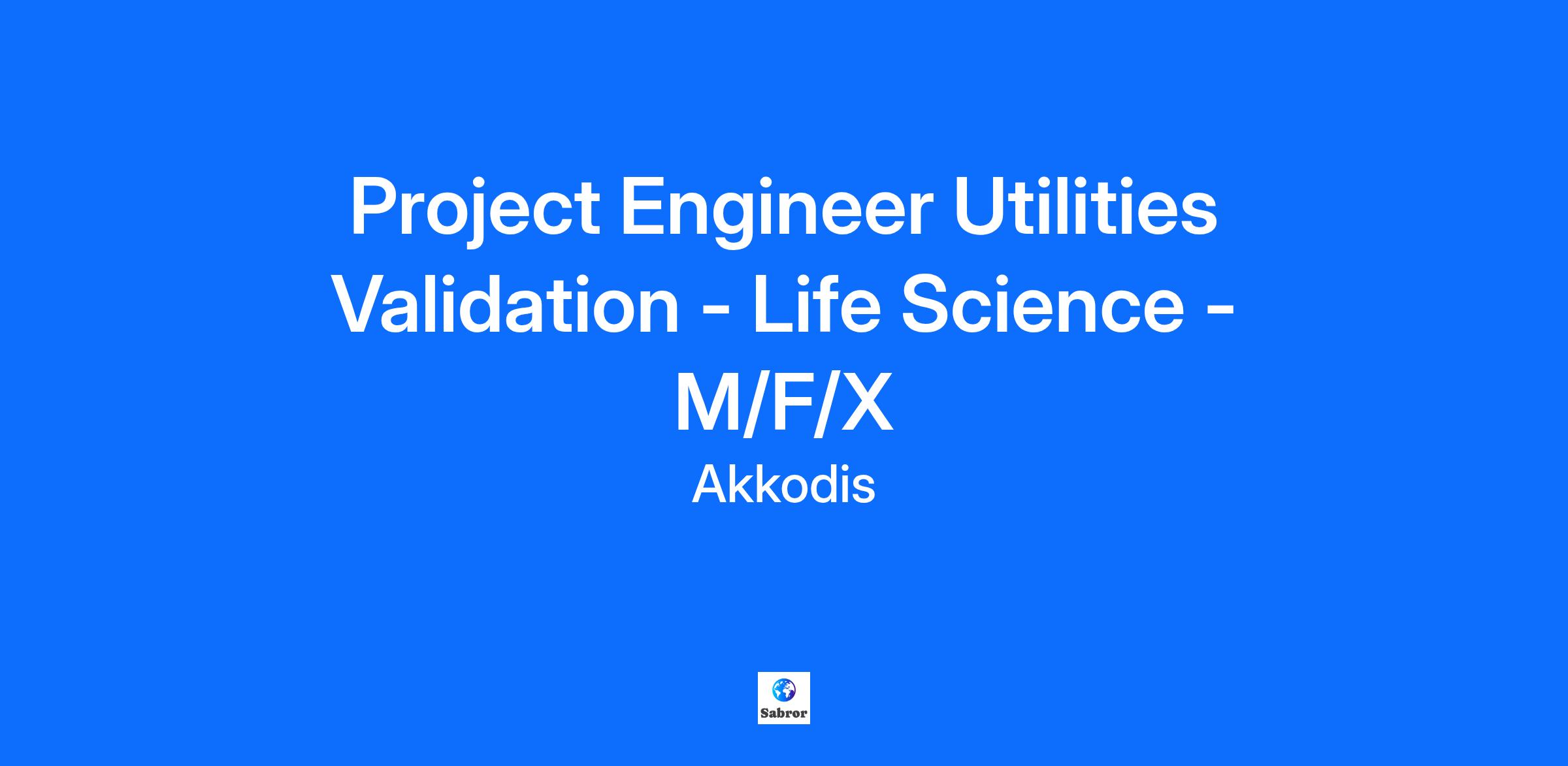 Project Engineer Utilities Validation - Life Science - M/F/X