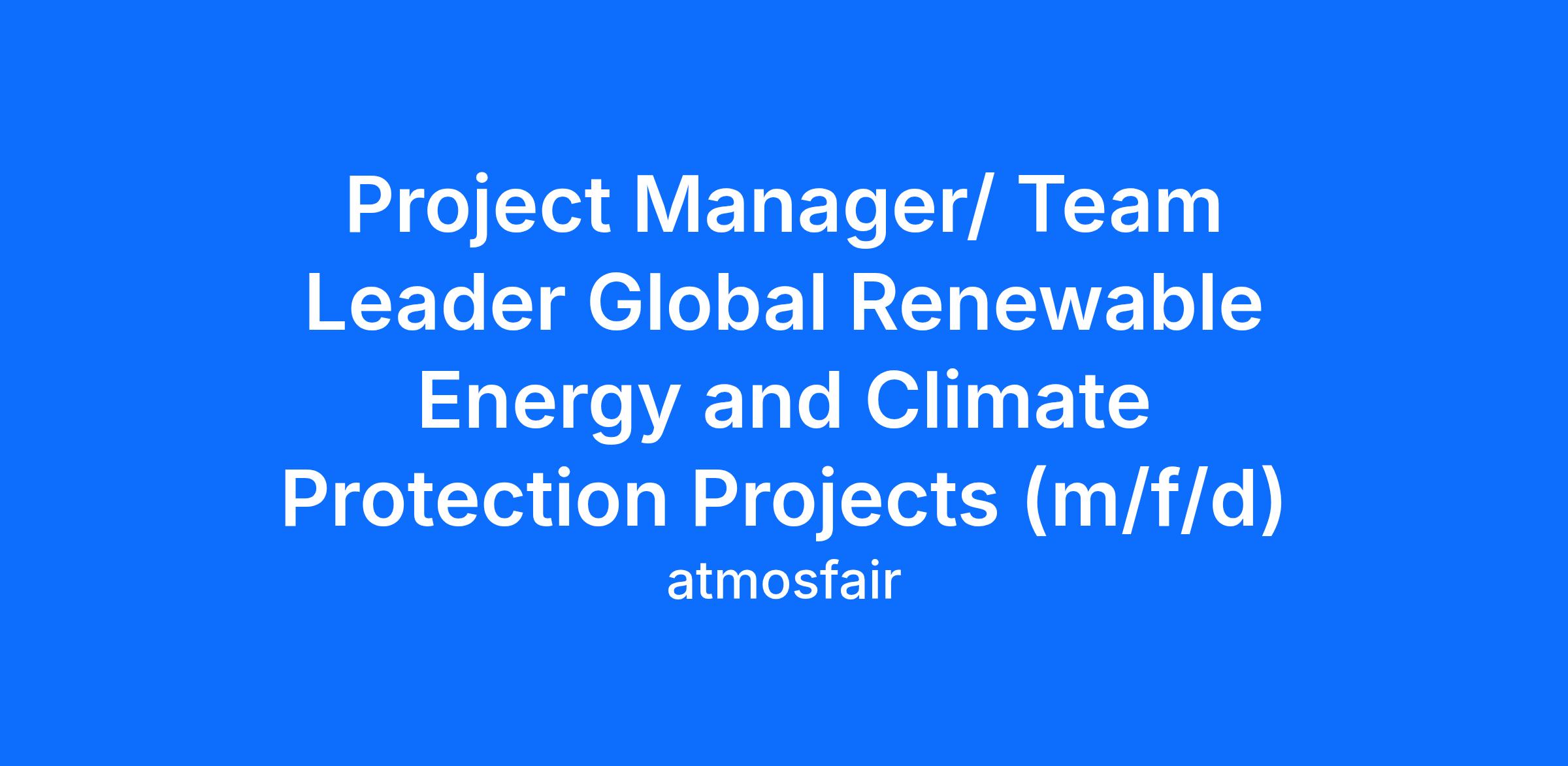 Project Manager/ Team Leader Global Renewable Energy and Climate Protection Projects (m/f/d)