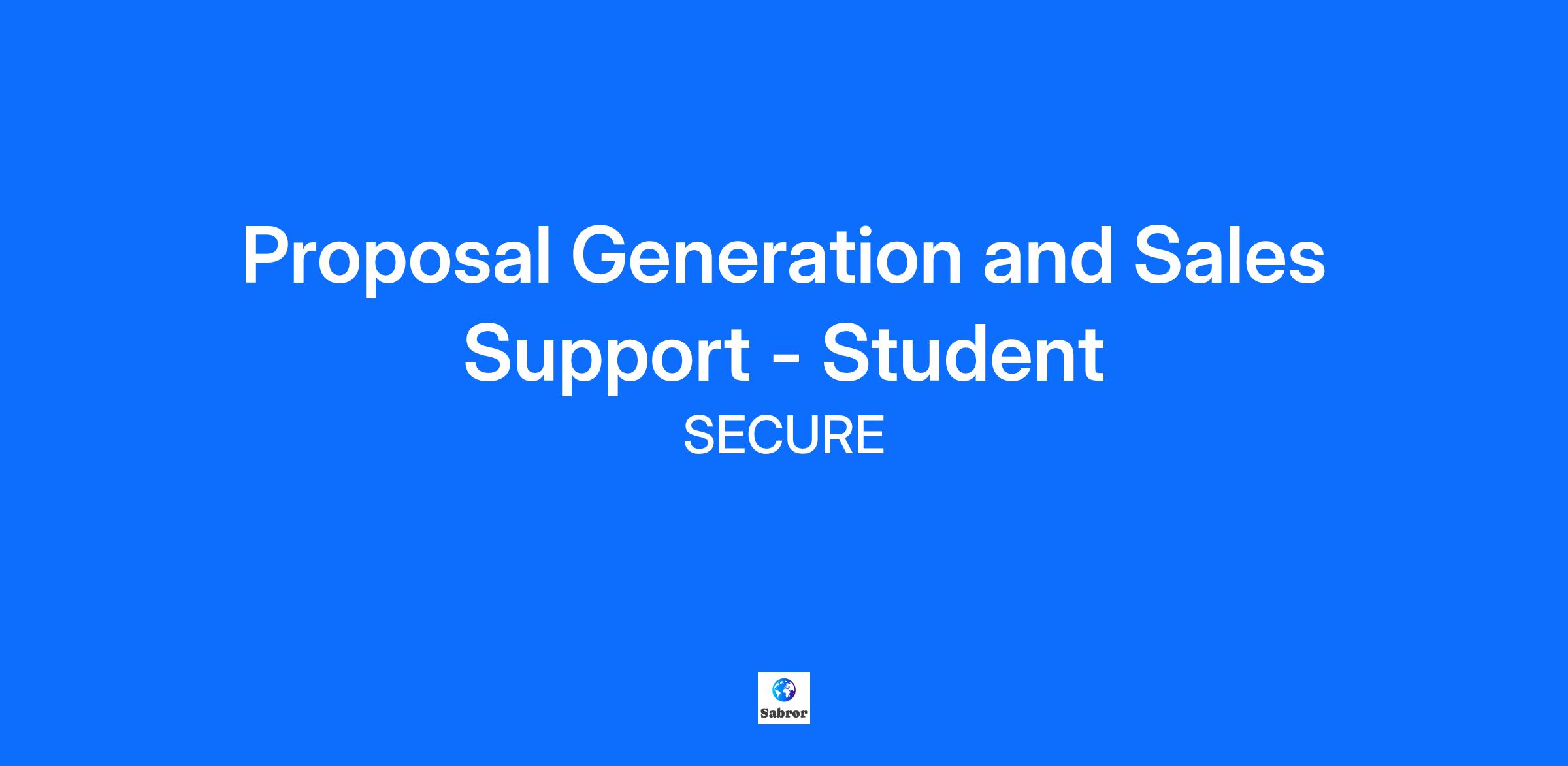 Proposal Generation and Sales Support - Student