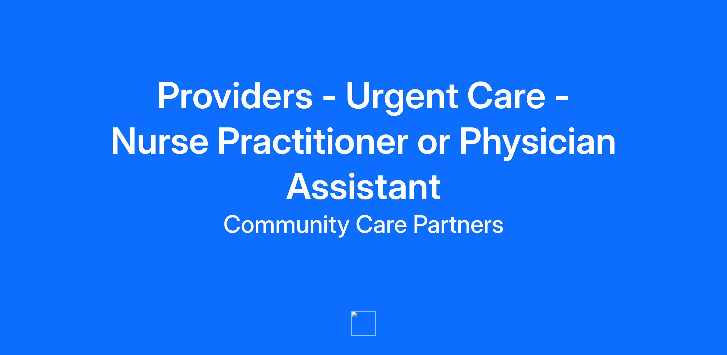 Providers - Urgent Care - Nurse Practitioner or Physician Assistant