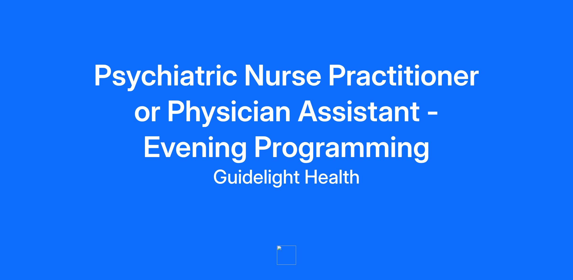 Guidelight Health is a cutting-edge behavioral healthcare company dedicated to transforming lives through high-quality PHP (Partial Hospitalization Program) and IOP (Intensive Outpatient Program) services. As a newly launched organization, we are on a mission to redefine the behavioral health industry by delivering exceptional care, utilizing state-of-the-art facilities, and prioritizing the well-being of those we serve. At Guidelight Health, we are building a team of passionate, forward-thinking professionals who are eager to be part of this exciting journey to reshape mental health care. Join us in making a lasting impact! Title: Psychiatric Nurse Practitioner or Physician Assistant Reports to: Executive Director Location: 100% onsite in Woburn or Worcester, MA. FLSA Status: Non-Exempt Schedule: This is a part-time, 1099 position with approximately 9 clinical hours each week Monday, Wednesday, and Thursday from 4:00 - 7:00. Hours are expected to increase eventually to a full-time and W2 employment status as the program continues to grow. Role Summary: The Psychiatric Nurse Practitioner or Physician Assistant will provide psychiatric evaluations, diagnosis, medication management, and therapeutic support to individuals enrolled in our PHP and IOP programs. You will collaborate with other clinicians, including psychiatrists, therapists, to provide a holistic approach to patient care. You will be providing virtual support to the 2nd clinic depending on your location (Woburn or Worcester) during your clinical hours. Role Responsibilities: Conduct psychiatric evaluations, including intake assessments, for patients in the PHP/IOP programs. Develop and implement individualized treatment plans based on psychiatric assessment findings. Prescribe and manage psychiatric medications, monitoring for effectiveness and side effects. Provide ongoing medication management and adjust treatment plans as needed. Work closely with therapists, social workers, and other team members to coordinate care for patients. Provide crisis intervention and support when needed, particularly in a PHP/IOP setting. Participate in clinical team meetings, case reviews, and treatment planning discussions. Document all patient interactions and treatment in accordance with agency policies and regulatory requirements. Educate patients and their families about mental health conditions, treatment options, and medication management. Ensure compliance with all legal and ethical standards for the delivery of psychiatric services. Maintain up-to-date knowledge of evidence-based practices and advancements in psychiatric care. Required Qualifications: Master’s degree in Nursing (MSN) from an accredited program. Board certification as a Psychiatric Mental Health Nurse Practitioner (PMHNP-BC) or Physician Assistant. Current, unrestricted state licensure as a Psychiatric Nurse Practitioner or Physician Assistant. Minimum one year of experience prescribing medication. Strong knowledge of mental health diagnoses, psychiatric medications, and treatment modalities. Excellent communication skills, with the ability to work collaboratively in a team-based environment. Ability to work with diverse populations and demonstrate cultural competence. Strong organizational skills and attention to detail. Compassionate, empathetic, and patient-focused approach to care. Ability to manage complex cases and respond effectively to crisis situations. A winning mentality! Preferred Qualifications: Experience in a behavioral health setting, including PHP and/or IOP. Guidelight is an Equal Opportunity Employer. We are passionate about fostering an environment where everyone, irrespective of their race, gender, sexual orientation, or background, feels valued and included. We want to be a place where every employee has a voice and feels truly welcome, appreciated, free to be themselves, and empowered and enabled to do their best work. Our differences make us unique, and we actively support these differences and work to create communities of respect throughout our company. www.guidelighthealth.com Pay Range $93—$113 USD